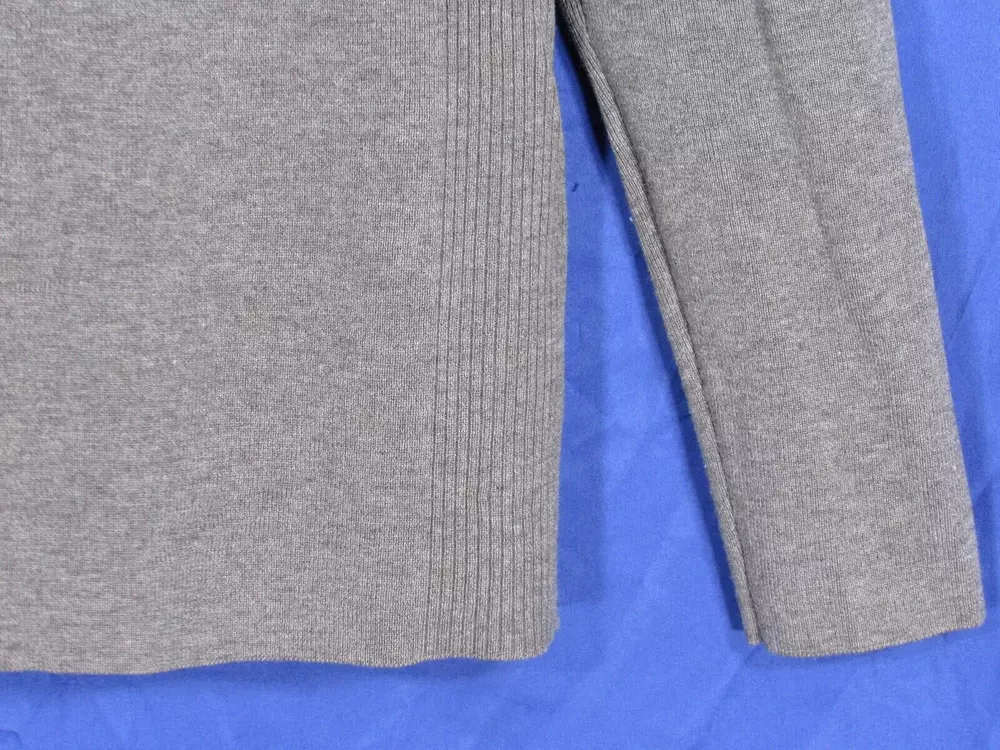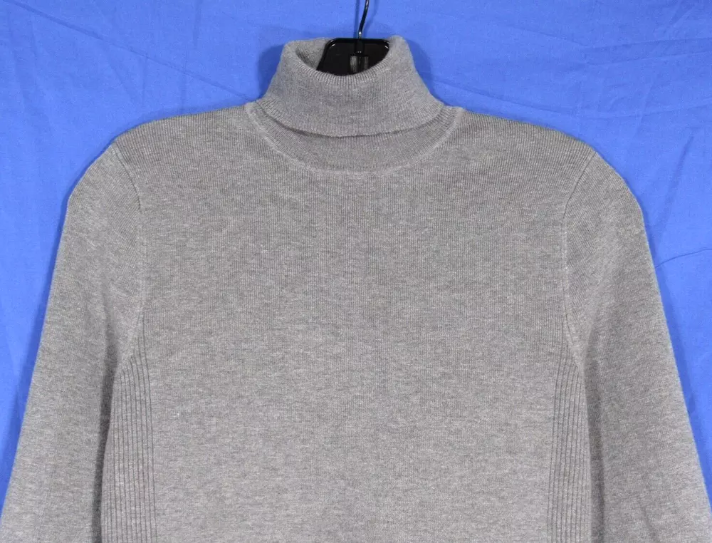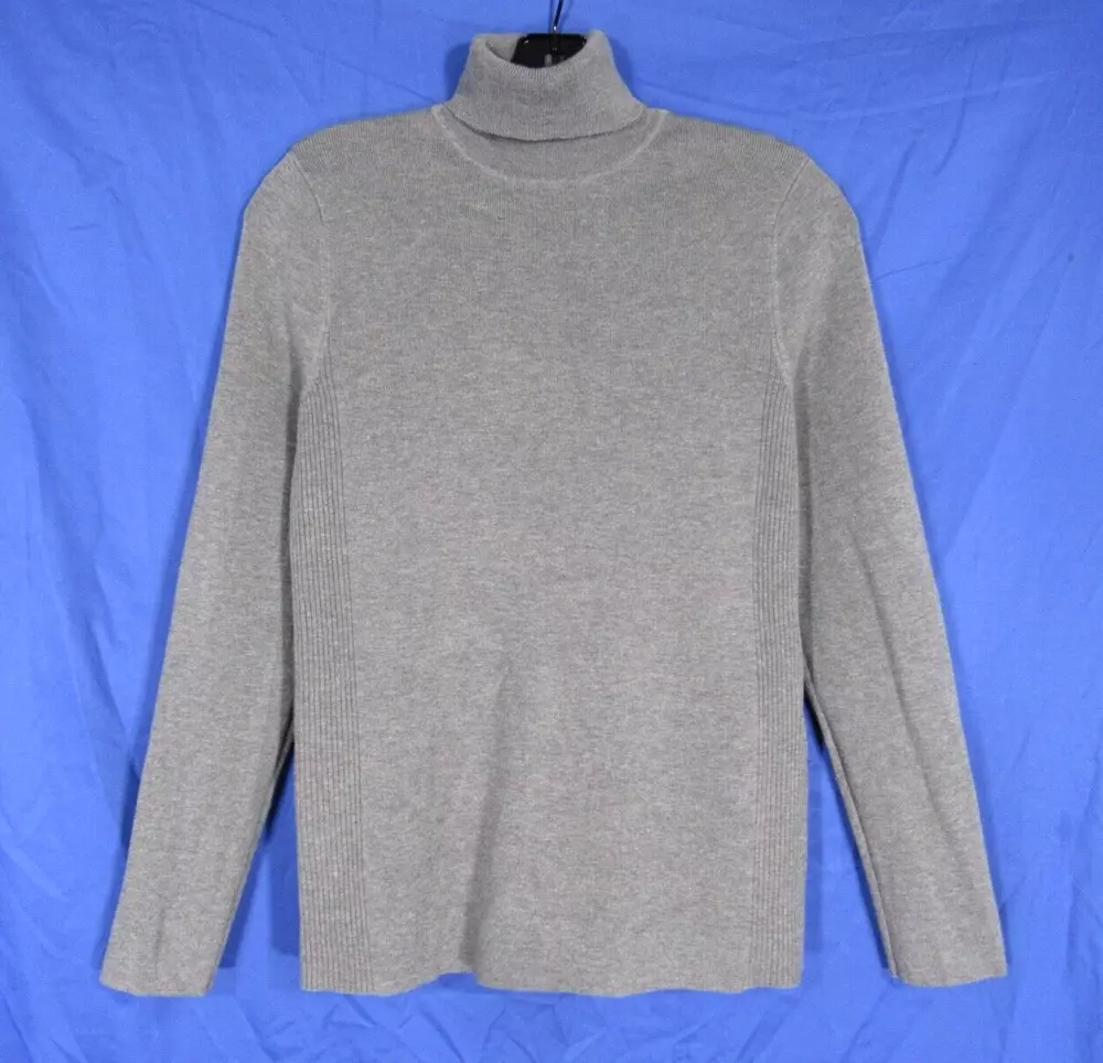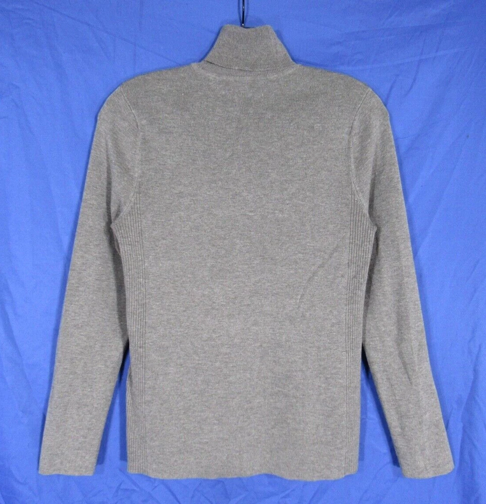 CHICO'S Solid Gray STRETCHY Ribbed Knit TURTLENECK Body-Hugging SWEATER 1 (US M)