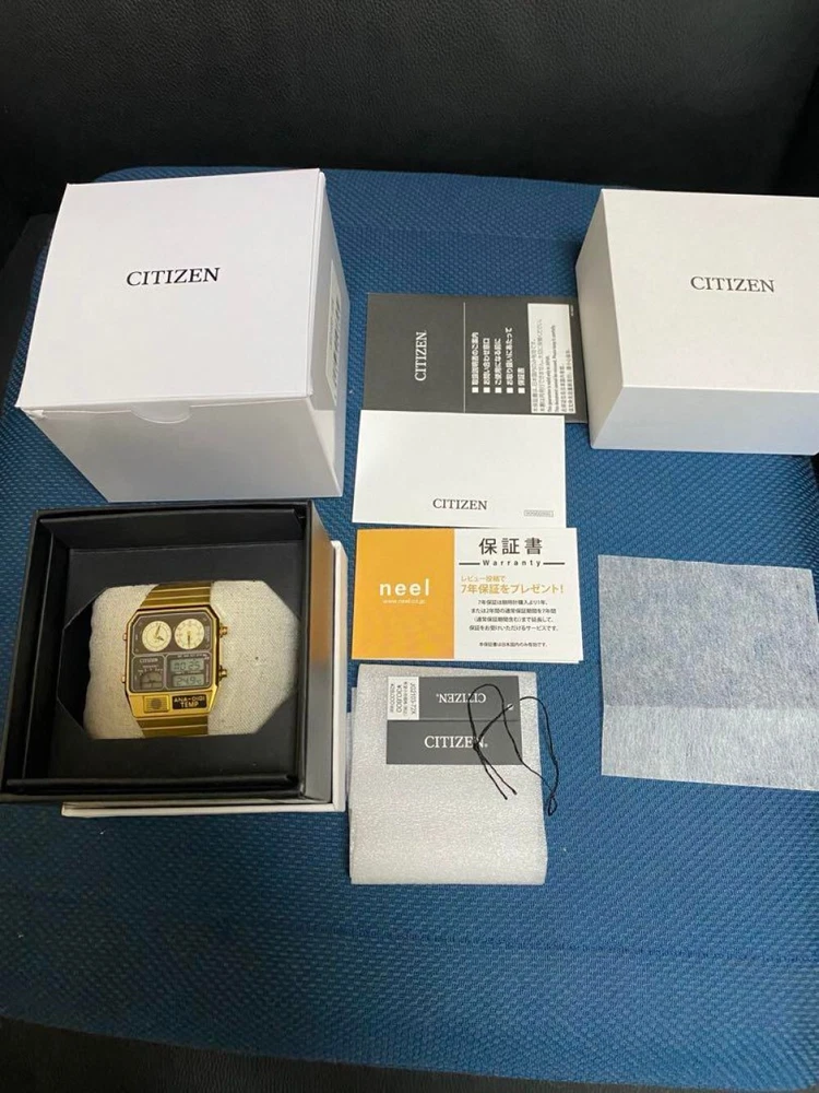 Band Material: Stainless Steel Movement: Quartz Customized: No Department: Men's Display: Analog & Digital Dial Color: Brown Age Group: Adult Style: Casual Band Color: Gold Vintage: No Type: Wristwatch gtin13: 4974375486584 Watch Shape: Square Brand: CITIZEN Case Size: 35 mm Reference Number: JG2103-72X UPC: 4974375486584 With Original Box/Packaging: Yes Case Material: Stainless Steel