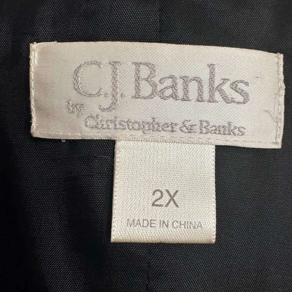 CJ Banks Blazer 2X Womens Tapestry Jacket Red Black Abstract Whimsigoth Office. Condition is Pre-owned. Shipped with USPS Ground Advantage.
