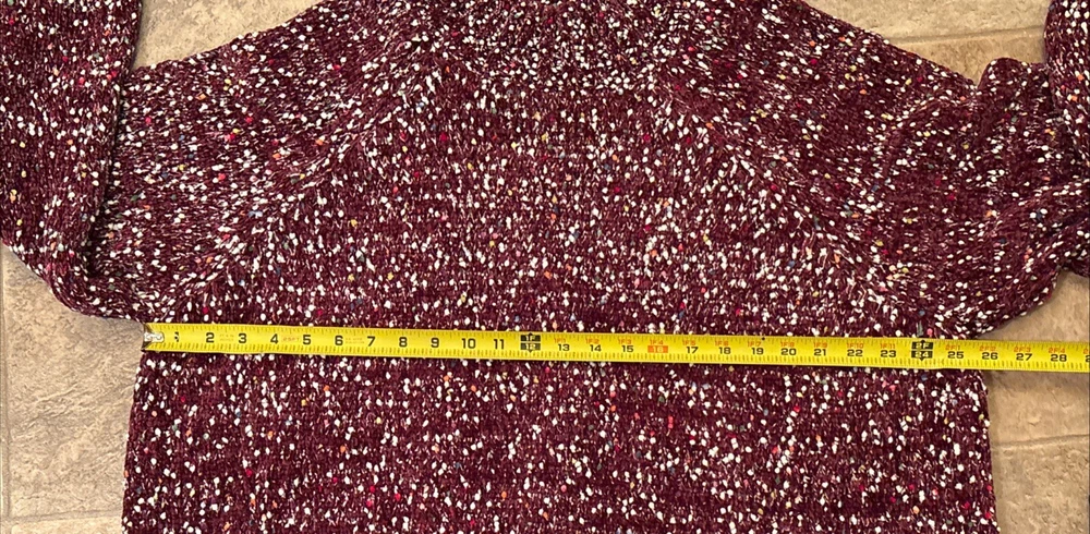 CJ Banks Colorful Knit Tunic Sweater Colorful Detail 3X NEW 3XL XXXL Maroon To upcycle, I reuse shipping material as often as possible. Buy more from my store and save on shipping.