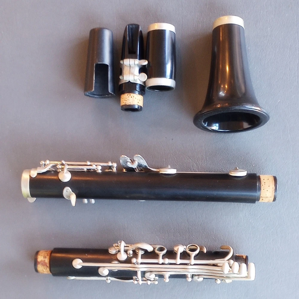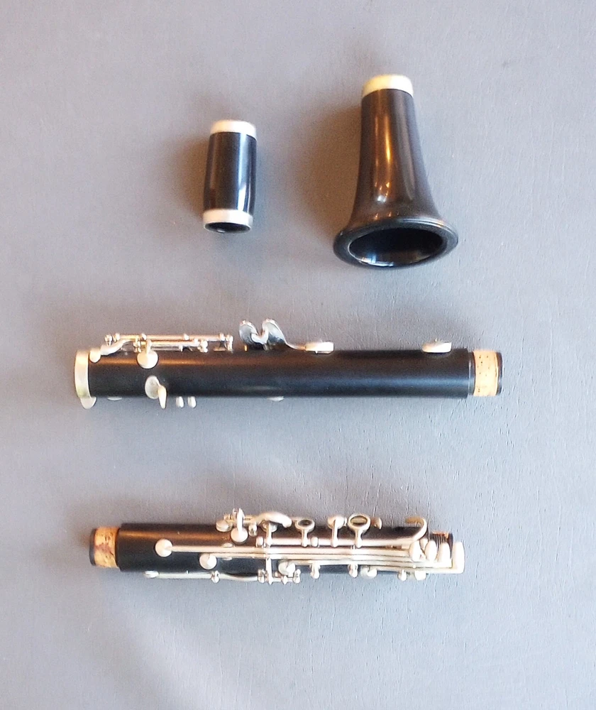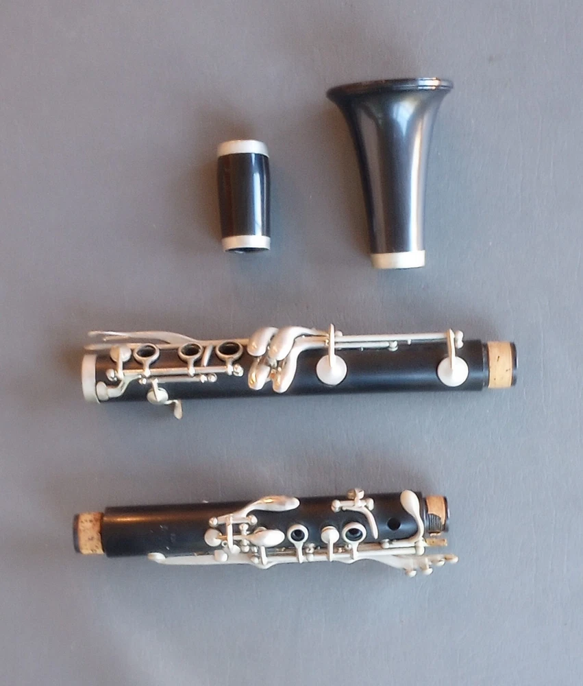 B flat CLARINET Artley 17S - PURCHASED IN 1963 + MOUTHPIECE + NICE CASE - UPPER BARREL FOR PARTS ONLY Replacing the upper barrel would create an instrument with really good quality sound. Artley 17S Clarinets are known for their superior quality of intonation and playability THE NUMBER 125120 CAN BE SEEN AT THE BOTTOM ON THE BACK OF THE LOWER BARREL, BUT IT DOESN'T SEEM TO BE A SERIAL NUMBER BECAUSE THIS CLARINET WAS BOUGHT IN 1963 CONDITION: Purchased in 1963, this is a very lightly used (for less than a year) instrument and surfaces show only minor signs of wear (see photos), however the upper barrel has a crack around its right side just down from the Artley 17S insignia and designated by some scratch marks (see last two instrument photos); keys function properly; keys, rings and springs are all present; cork damage can be seen on the upper barrel where the two barrels interconnect (see photo); other cork and key pads appear to be in good working order. RETURNS WILL NOT BE ACCEPTED FOR ANY ITEM(S) IN THIS LISTING. THE ABOVE ITEM(S) DESCRIPTION ATTEMPTS TO BE THOROUGH, BUT MULTIPLE PICTURES ARE TAKEN IN CASE SOME DETAIL WAS OVERLOOKED. THE PHOTOS ARE PART OF THE DESCRIPTION, SO EXAMINE ALL PICTURES CAREFULLY AND IF YOU ARE NOT SURE ABOUT SOMETHING, PLEASE ASK BEFORE BIDDING. From a smoke-free home. What you see in the photos is what will be shipped to you – no stock photos used. Please feel free to ask as many questions as you like ....or use the "contact seller" link to express any concerns you might have. I will try to get items to the post office within 1-2 days, depending upon whether it is a weekday or weekend sale. Hopefully it will help that most items are shipped with tracking and/or delivery confirmation – “most” because it would be silly to pay $4.00 for tracking and/or confirmation on a $2 item . I’m also happy to combine shipping for multiple items – just need a request to make it happen. If used, delivery confirmation confirms delivery to prevent fraudulent charge-backs of claimed unreceived items. So if you are checking a delivery confirmation number, the first time you see data about your package might be when it gets to your local post office (not as informative as tracking). In general, shipping will be as low as I can get it. For more expensive items, the shipping cost might include insurance. If shipping a non-sport trade card(s) – the cost depends upon weight. Ebay rules state: One single sealed pack or up to 15 standard raw cards per package weighing : 2 oz = $0.85 Returns: almost all items will be USED (not new) and therefore sold AS-IS. In general, I tend to be detail-conscious, so the specifics of condition should be reflected in item photos and descriptions. However, if it turns out that I miss a defect, accidentally omit something or make an error in the description, please let me know and I will try to fix it. Since ebay limits the number of photo postings per item, a variety of extra photos may be taken for purposes of discussion in case the need should arise. To keep prices down, no returns on new items either. Payment: To avoid any confusion, payment should be made promptly. Feedback: If you have a positive experience, your feedback will be appreciated & I will reciprocate. Thank you :<)