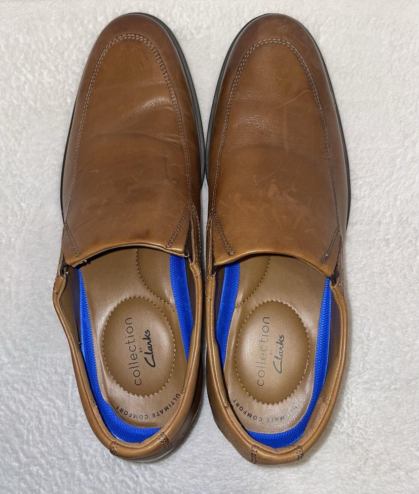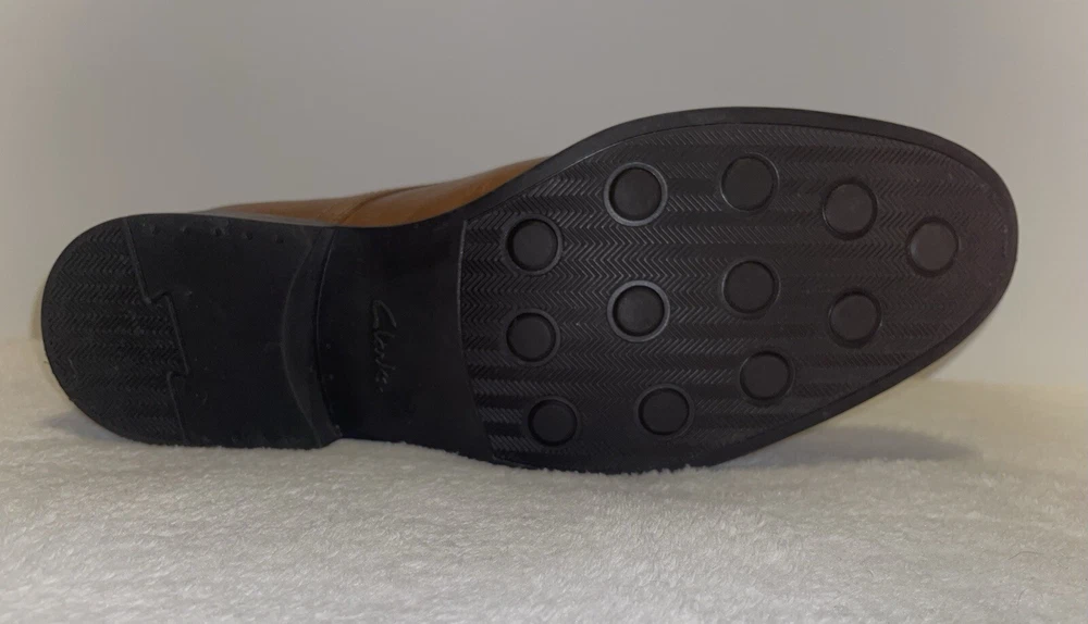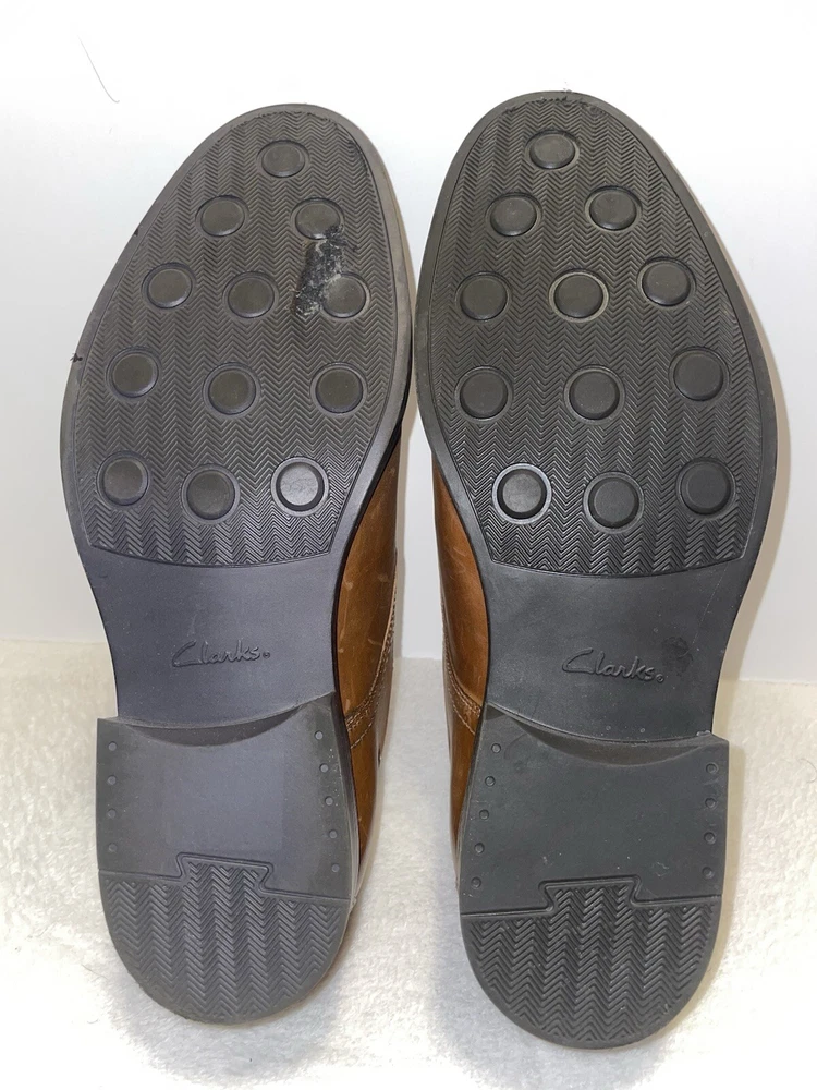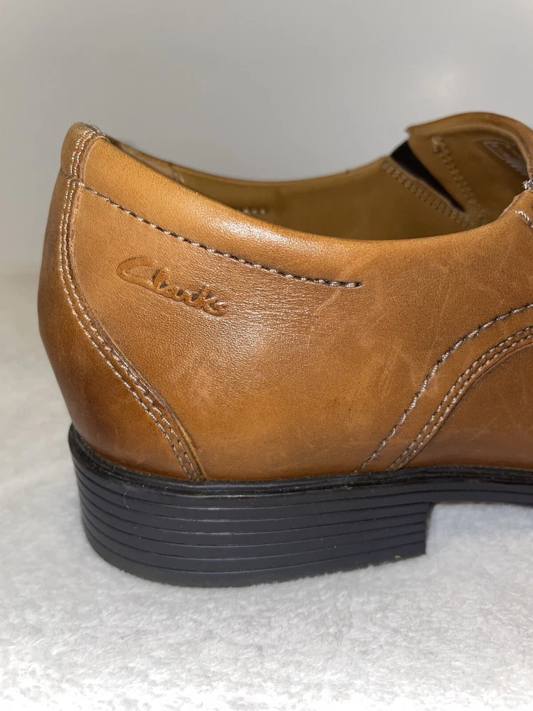 The CLARKS Men's Whiddon Step Loafers in Brown are a stylish and comfortable choice for casual wear. This slip-on shoe features a solid pattern with a leather upper and breathable leather lining. The cushioned insole and rubber outsole provide comfort and support for everyday activities. With a UK size of 7G and a US size of 8M, these loafers are suitable for travel, workwear, or casual occasions. Perfect for men looking for a versatile and classic footwear option. Shoes were worn once for a wedding. Shoes are sold in as-is condition, as depicted in photographs.