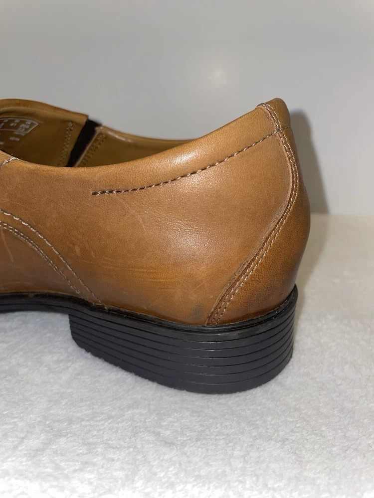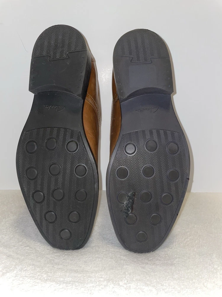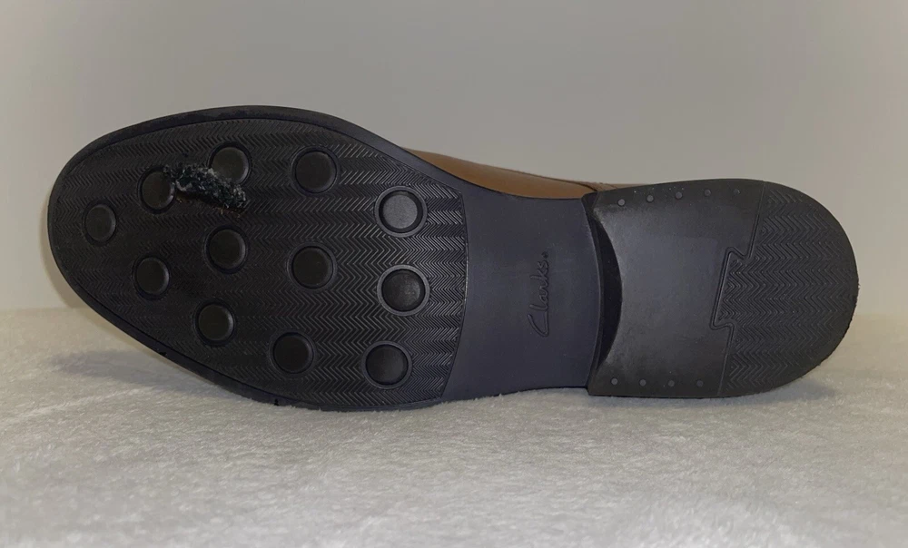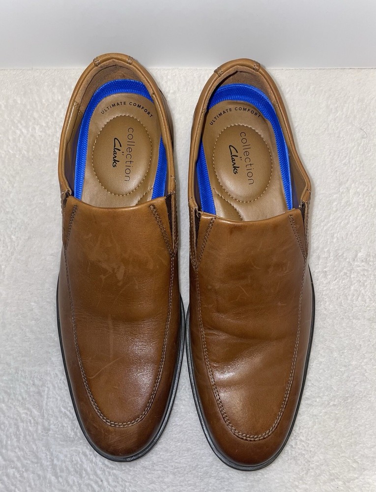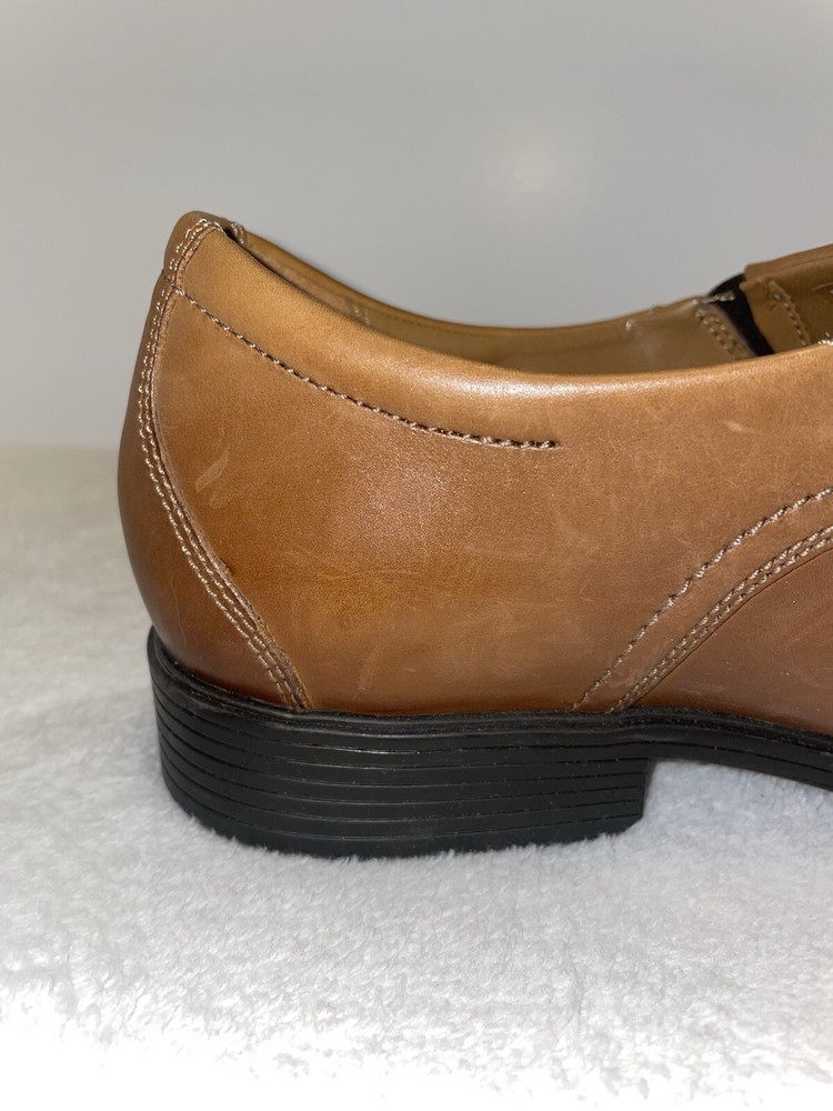 The CLARKS Men's Whiddon Step Loafers in Brown are a stylish and comfortable choice for casual wear. This slip-on shoe features a solid pattern with a leather upper and breathable leather lining. The cushioned insole and rubber outsole provide comfort and support for everyday activities. With a UK size of 7G and a US size of 8M, these loafers are suitable for travel, workwear, or casual occasions. Perfect for men looking for a versatile and classic footwear option. Shoes were worn once for a wedding. Shoes are sold in as-is condition, as depicted in photographs.