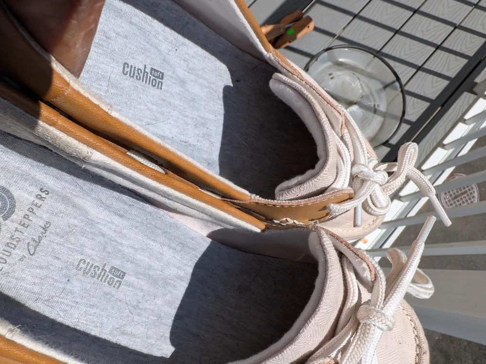 The CLARKS Cloud Steppers women's shoes in size 9 are a comfortable and stylish choice for women. These slip-on flats feature beige leather uppers and a flat sole, making them perfect for everyday wear. With the trusted Clarks brand and high-quality materials, these shoes offer both style and durability. Ideal for women looking for a versatile and practical footwear option.