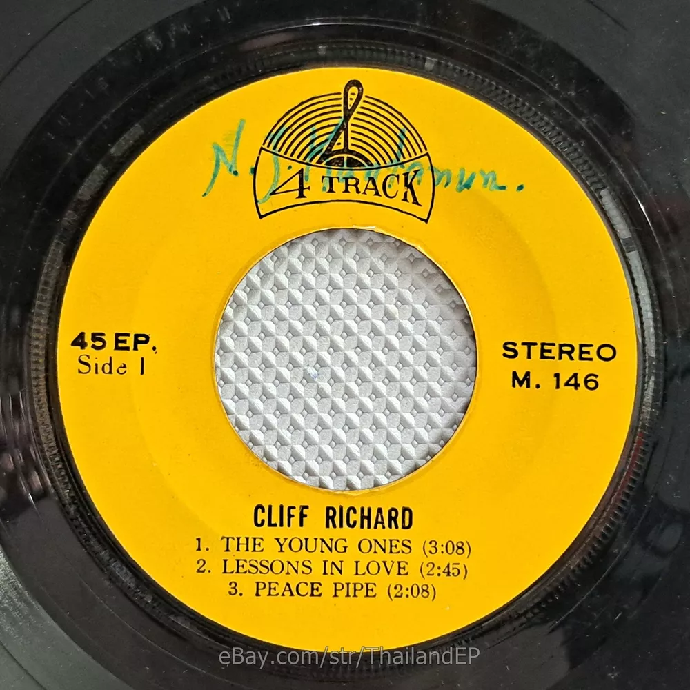 Welcome to The World of ""Thailand Vinyl Records"".Very rare and beutiful picture of cover. Check everyday . This item is for a true 7" single collector. It was printed and sold locally as limited EP back in the early 70's. Only few copies were spread outside Thailand. Most professional record collectors know that it is scarce nowadays and is absolutely a collector's item. If you know a UK magazine called RECORD COLLECTOR then you must have read many articles mentioning THAILAND EP and this is it !!! Here is your chance to own one-of-a-kind piece of Asian's 7" single history. Description Records !!! DETAIL SONG and ARTIST !!! Side A: A1 = Cliff Richard - The Young Ones / A2 = Cliff Richard - Lessons In Love Side B: B1 = Cliff Richard - We Say Yeah / B2 = Cliff Richard - When The Girl In Your Arms Is The Girl In Your Heart Label&Catalogue number : : M146 Country of release : THAILAND Condition (Sleeve/Disc) : VG / VG+ and pls see picture too. Shipping I am seller in Thailand not USA.So I can not ship 4$ as policy pls understand this real rate from oversea . Price for shipping(Airmail )&Packaging to worldwide only US 14.99 USD .Except Asia and JAPAN only 14.99 USD. You can save cost for combine shipping only 3 USD$ per each. 2xEP=17.99 USD$ , 3xEP=20.99 USD$ . My package very safety by big cardboard don't worry about your's EP/PS/LP. Time delivered 21-45 days . ***All item : have tracking system no need add money*** **For normal shipping (Airmail).Time delivery to ITALY maybe use 1-2 Months, France use 1-2 Months.But Don't worry item will arrived to you sure!!.For fastest and High value you can use Express Mail Service cost for1 EP =39 USD.EP will arrived to you within 5-7 Days. ***All shipment have fully tracking system *** Payment PAYMENT : I accept the follow payment by eBay managed , . My ID eBay provide by eBay .Account will be provide at the end auction.Charges to be covered by winner. If you have question pls email to me anytime i can answer immediatly. I have many EP,PS 7" Thailand Pls Click => View seller's other items Check my feedback , I care and honest all customer.I welcome 0 feedback but contact me first if you will bidding. Good Luck !!!! and Enjoy . 45 RPM / EP/ LP Grading Scale: Mint /NM/ Excellent(VG++) /VG+/ VG /G+ /Good(G) / Fair / Poor / Bad (According Record Collector Magazine (UK)) LOT150-33M146