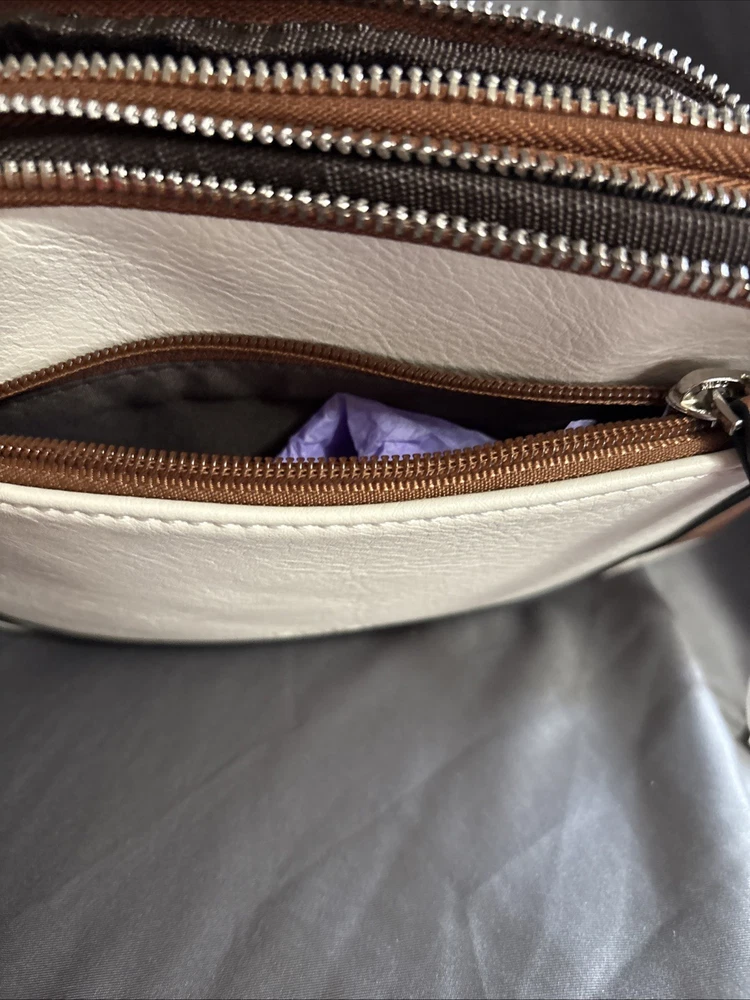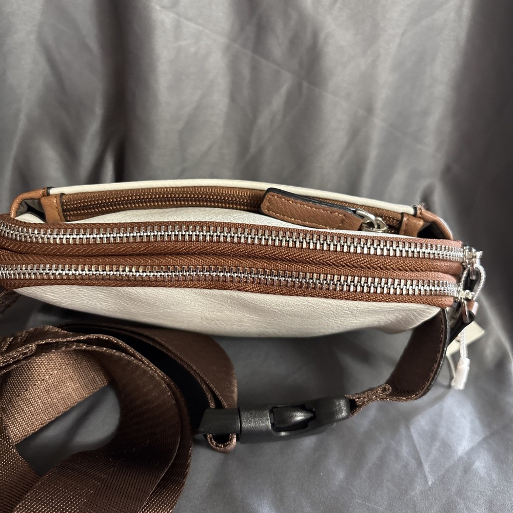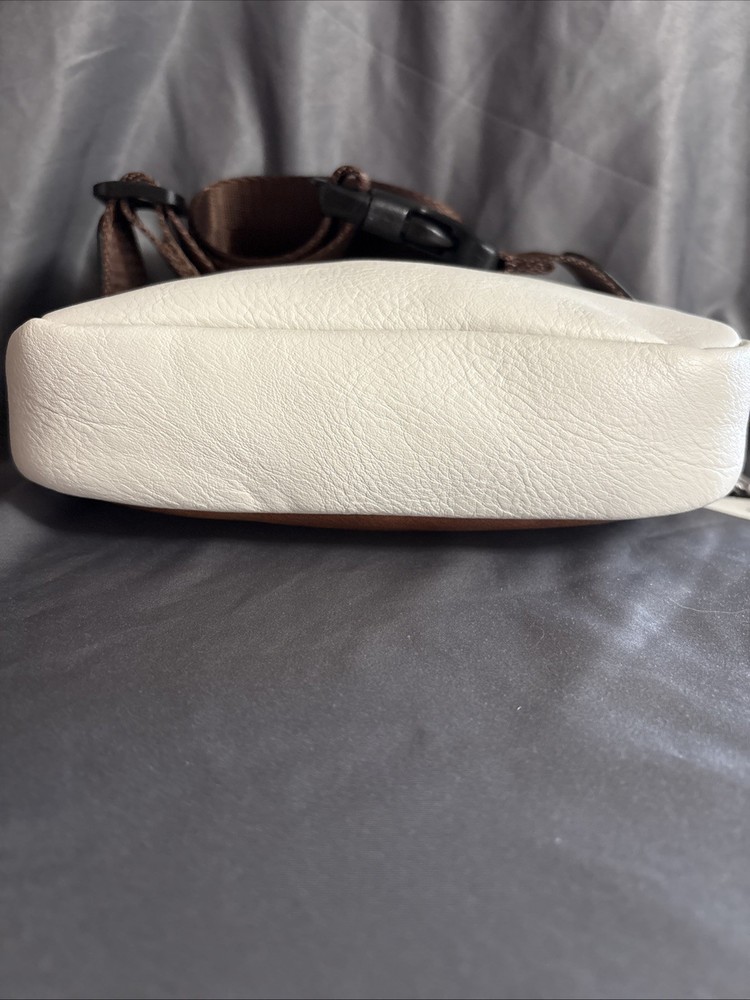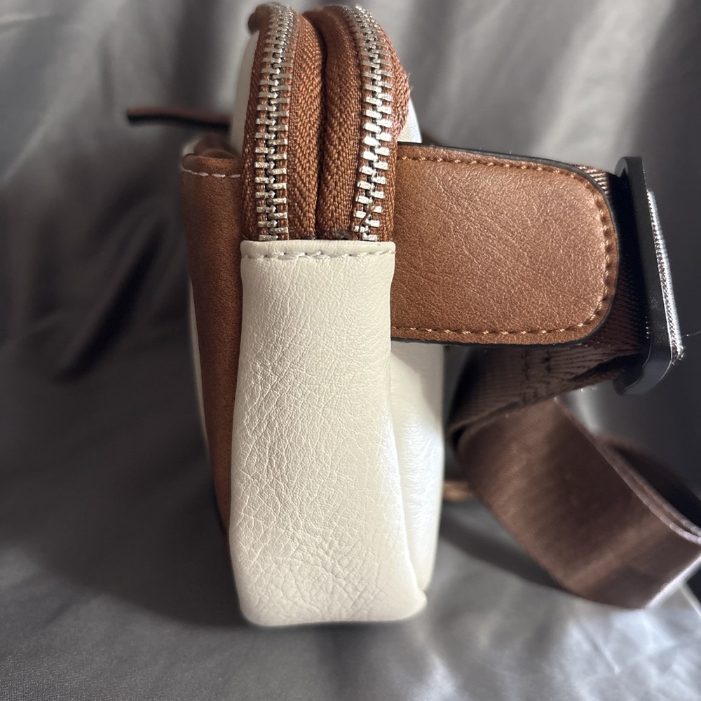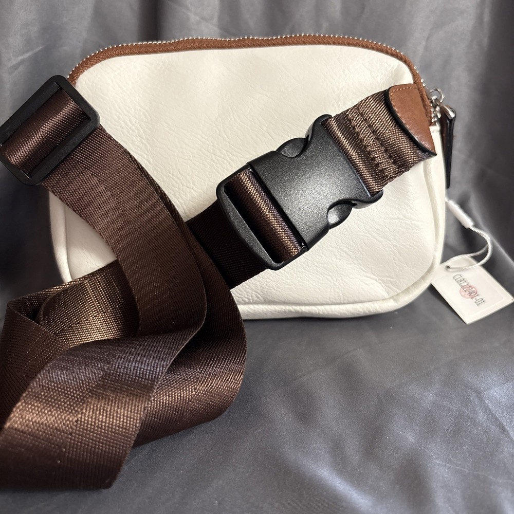 Upgrade your style with this trendy CLUCI Belt Bag for Women. The mini Everywhere Crossbody Waist Bag is perfect for casual, business, or travel occasions. It has a zip closure and a fabric lining material in brown color. The bag measures 9 inches in width, 6 inches in height, and 2 inches in depth. The off-white exterior color with brown nylon straps and adjustable straps adds a preppy touch to your outfit. The faux leather exterior material and silver hardware color make it a durable and stylish accessory. This crossbody bag features a cross-body strap and adjustable strap, making it easy to carry around. The CLUCI Belt Bag is a perfect addition to your wardrobe.