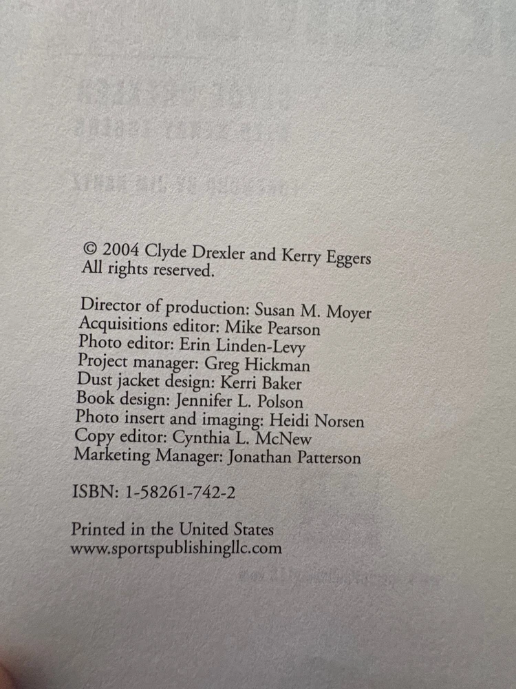 CLYDE DREXLER AUTOGRAPHED "CLYDE The GLIDE" 2004 UNSTATED FIRST EDITION A LIFE IN BASKETBALL AUTOBIOGRAPHY. VERY GOOD ~ HARDLY ANY AGE WEAR ~ DUST COVER HAS A FEW "WAVES" ~ CD IS PERFECT ~ NEVER REMOVED FROM BOOK SEE SCAN, PLEASE. PROFESSIONALLY PACKED ~ SHIPPED SAFE And SECURE ALL WITHIN 24 HOURS OF RECEIPT OF SECURED FUNDS. WIN OR BUY MULTIPLE SIMILAR ITEMS And PAY SHIPPING FOR ONLY THE FIRST. SELLING MY MASSIVE COLLECTION OF AUTOGRAPHED BOOKS And SOOOOOO MUCH MORE!!