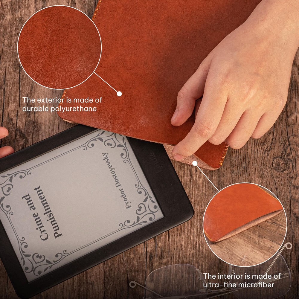 【Compatible Models】The size of the Kindle Paperwhite PU leather case varies depending on the model. It is compatible with 12th generation, 11th generation Kindle Paperwhite, Kindle Oasis, 6th generation to 10th generation Kindle. Please choose the size and color when purchasing. Please note that this case is designed to fit only the Kindle itself and cannot be used simultaneously with other cases. 【High quality Material】Premium PU (polyurethane) leather that is soft and gentle to the touch. The exterior is made of highly durable polyurethane, but the interior is made of super delicate microfiber which has a soft and supple texture. It helps protect your Kindle from scratches, dust, and minor impacts. 【Lightweight and Slim】PU leather is a lightweight material, ensuring that the case adds minimal bulk to your Kindle. This makes it easy to carry your Kindle around without feeling weighed down. 【Water Resistance】 High-quality PU leather is durable and long-lasting and naturally more water-resistant than genuine leather. This property makes it a good choice for your Kindle or device that may be exposed to moisture or rain. You can wipe it with a damp cloth to remove surface dirt or spills. 【Stylish and Convenient】Although it has a simple design, it not only protects your devices, but also gives you a sense of luxury and fashion. You can save time by charging your Kindle or device while it's in the case. It can also be used as a mouse pad when using a computer.