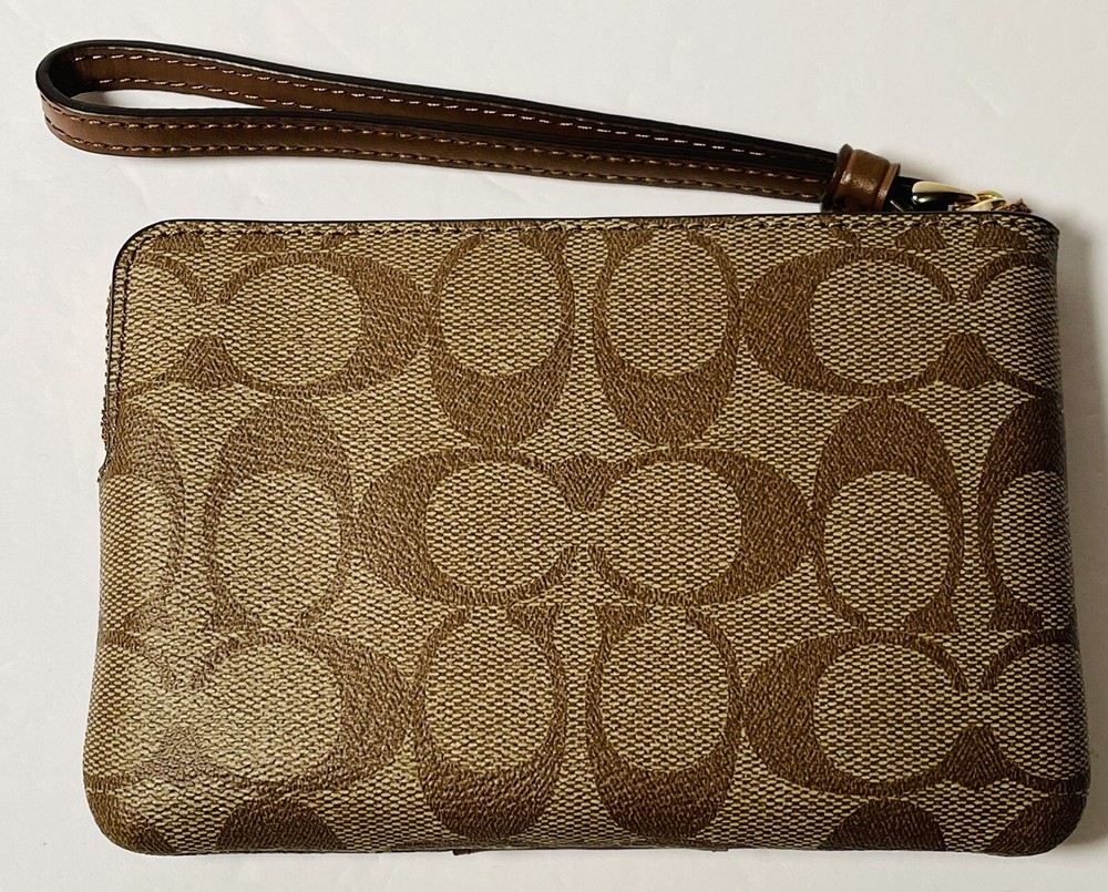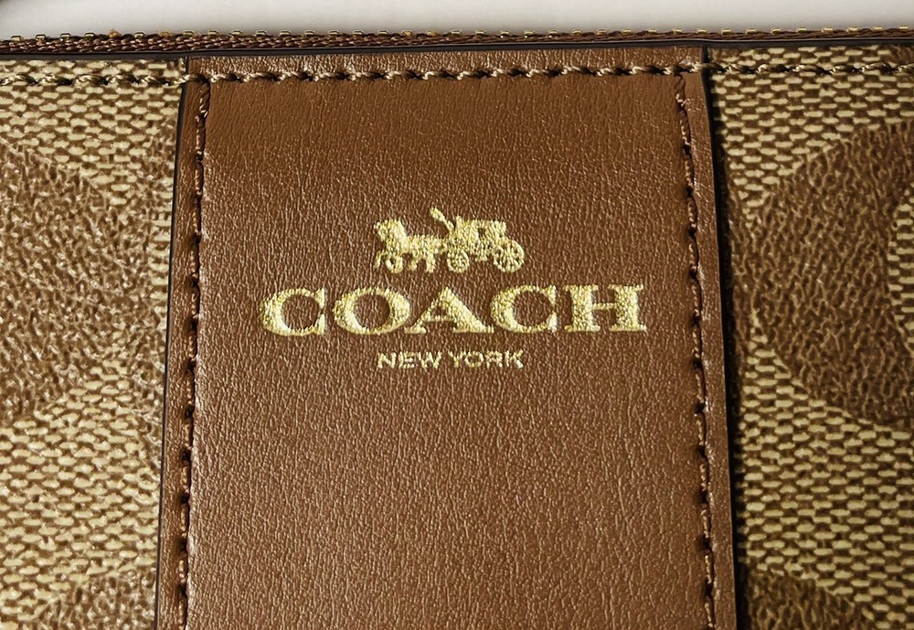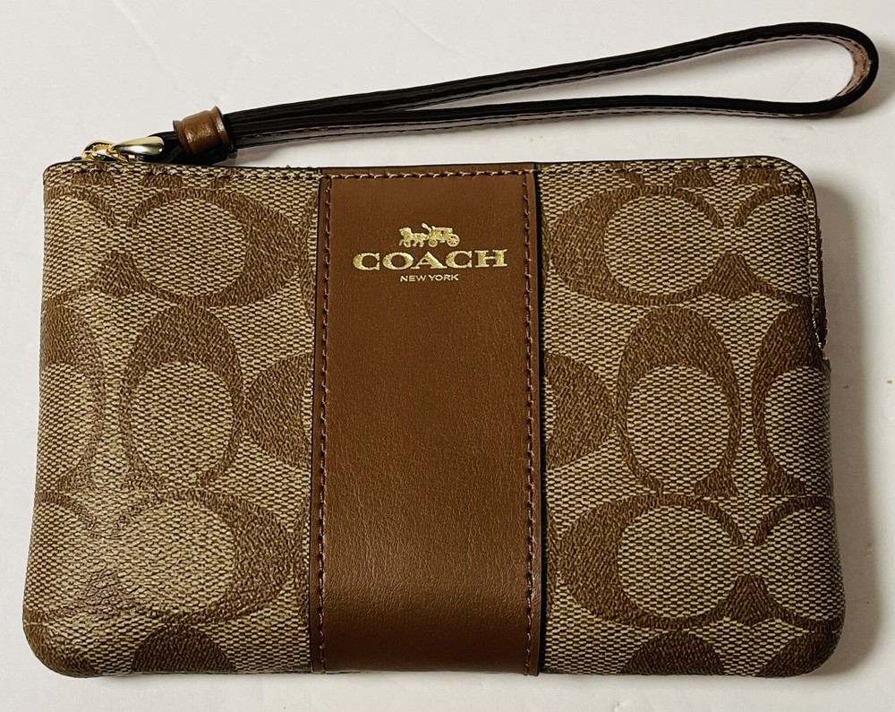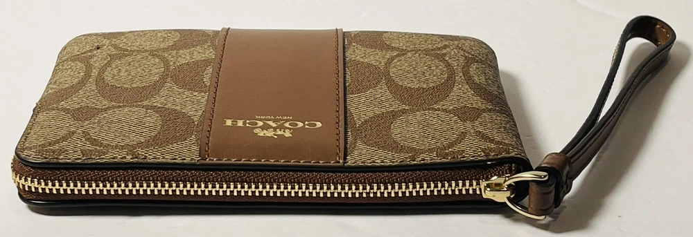 COACH Corner Zip Wristlet Signature Khaki Brown Wallet Woman BRAND NEW