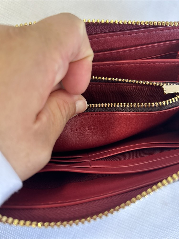 Brand:CoachStyle:Zip-AroundUPC:0195031387944Department:WomenPattern:Ornament PrintFabric Type:CanvasTheme:Christmas, Designergtin13:0195031387944Material:Smooth LeatherType:WalletFeatures:Credit Card Slots, Detachable Wrist Strap, Full-length Bill Compartments, Zip Coin PocketColor:Gold/Brown Black Multi