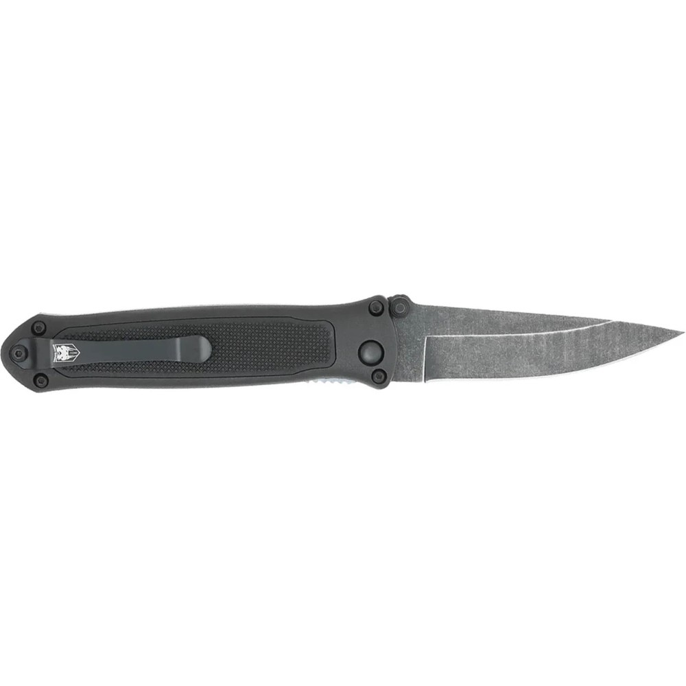 The CobraTec knife comes with G-10 scales, knurled rubberized grip and a black stonewashed 440 stainless steel blade. The hidden release button is hidden inside the handle. This folding knife can also be used as a thumb assist folder. This second generation of the Quick Strike was redesigned with a pocket clip for right hand carry.
