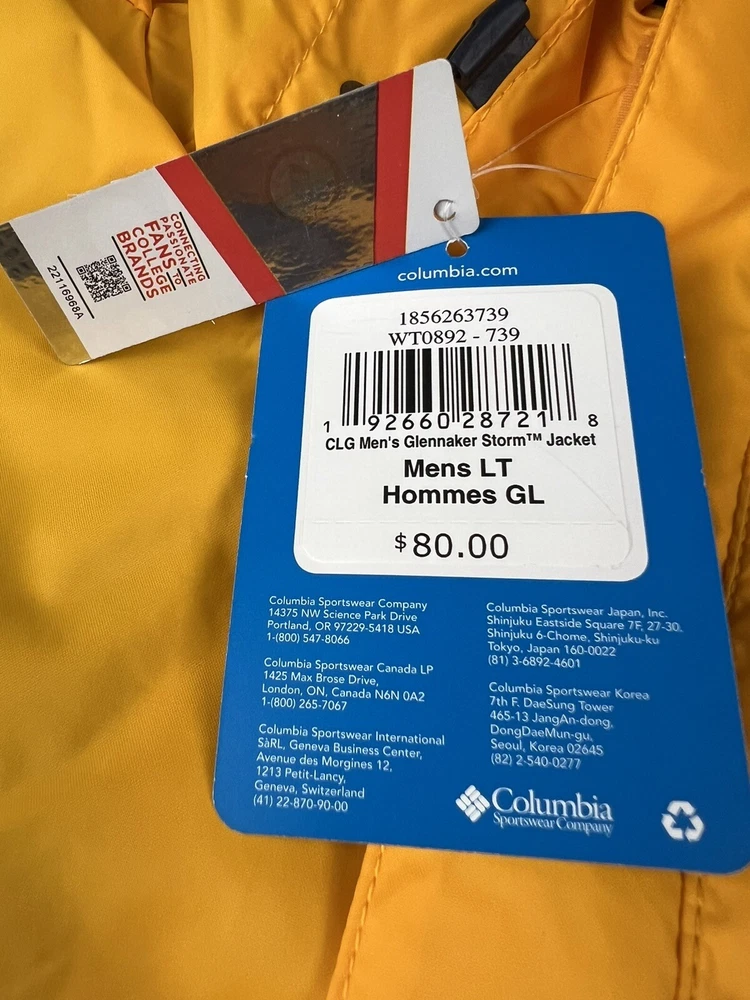 COLUMBIA West Virginia Mountaineers Glennaker Storm Jacket Waterproof Sz LT NWT