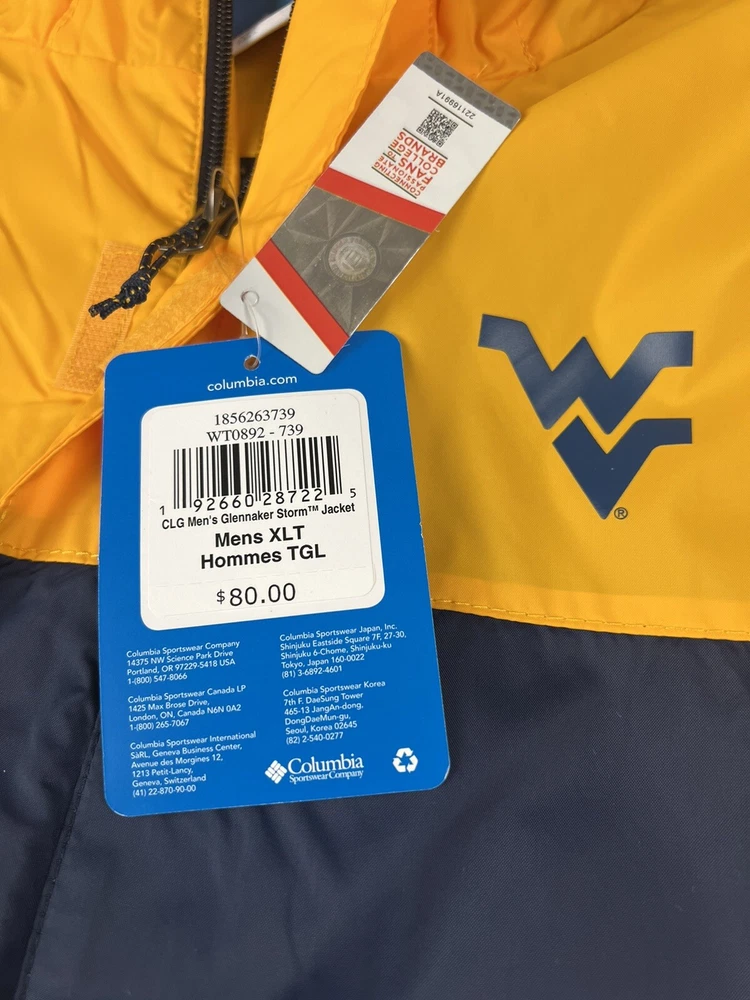 COLUMBIA West Virginia Mountaineers Glennaker Storm Jacket Waterproof Sz XLT NWT