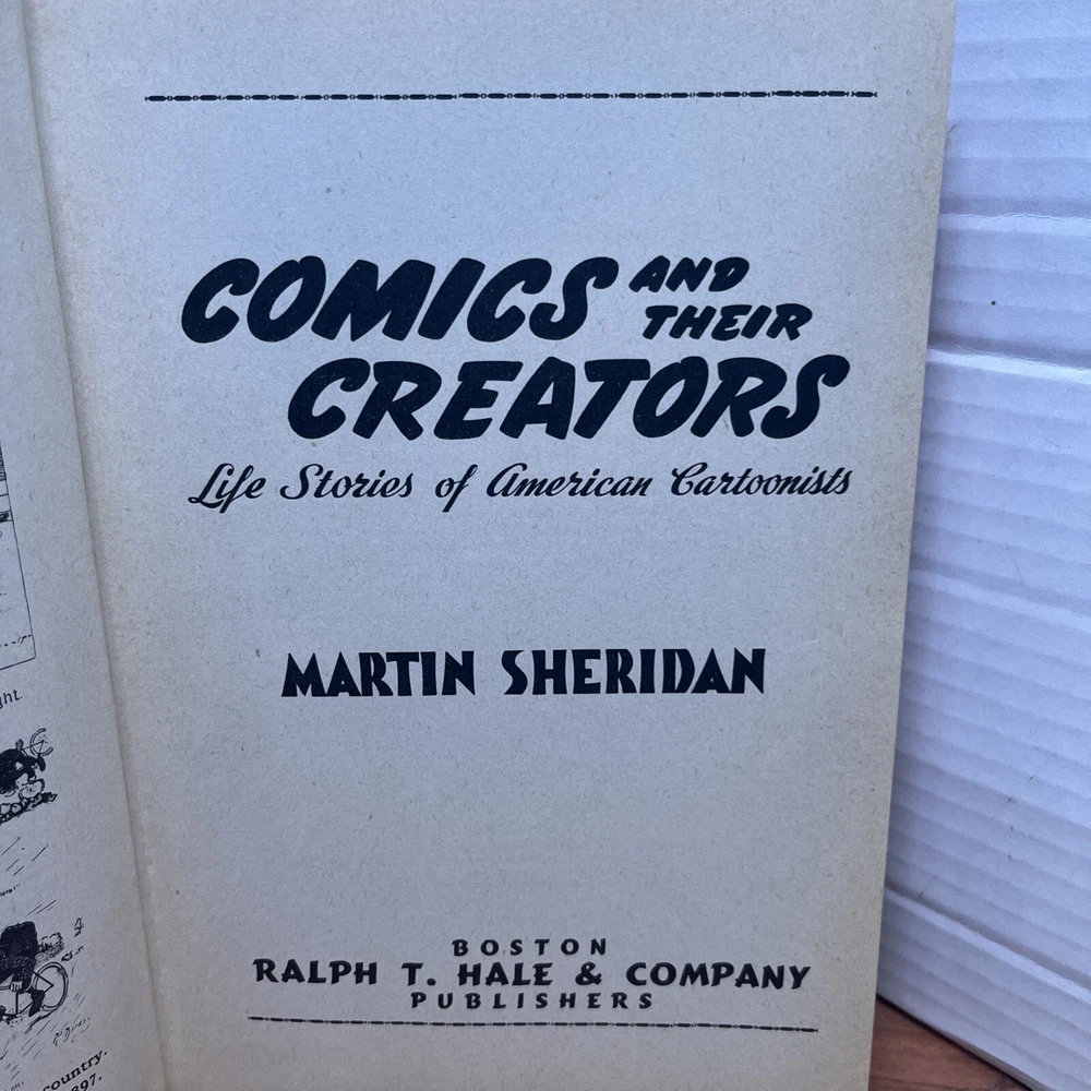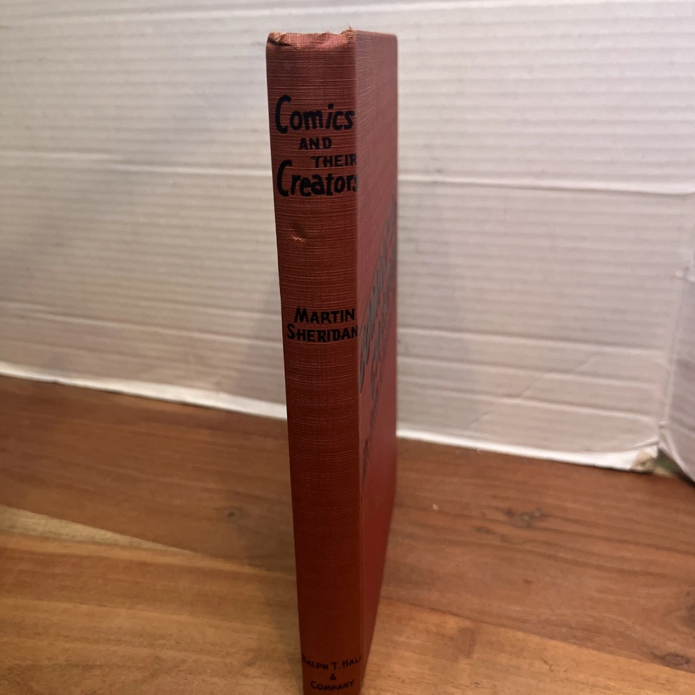The product is a hardcover book titled "COMICS AND THEIR CREATORS" by MARTIN SHERIDAN, published in 1944 by HALE, CUSHMAN AND FLINT in the United States. This is a Wartime Edition focusing on the topic of comics and their creators, making it a valuable collectible for enthusiasts of comic book history. The book is written in English and provides insight into the world of comics during that era.