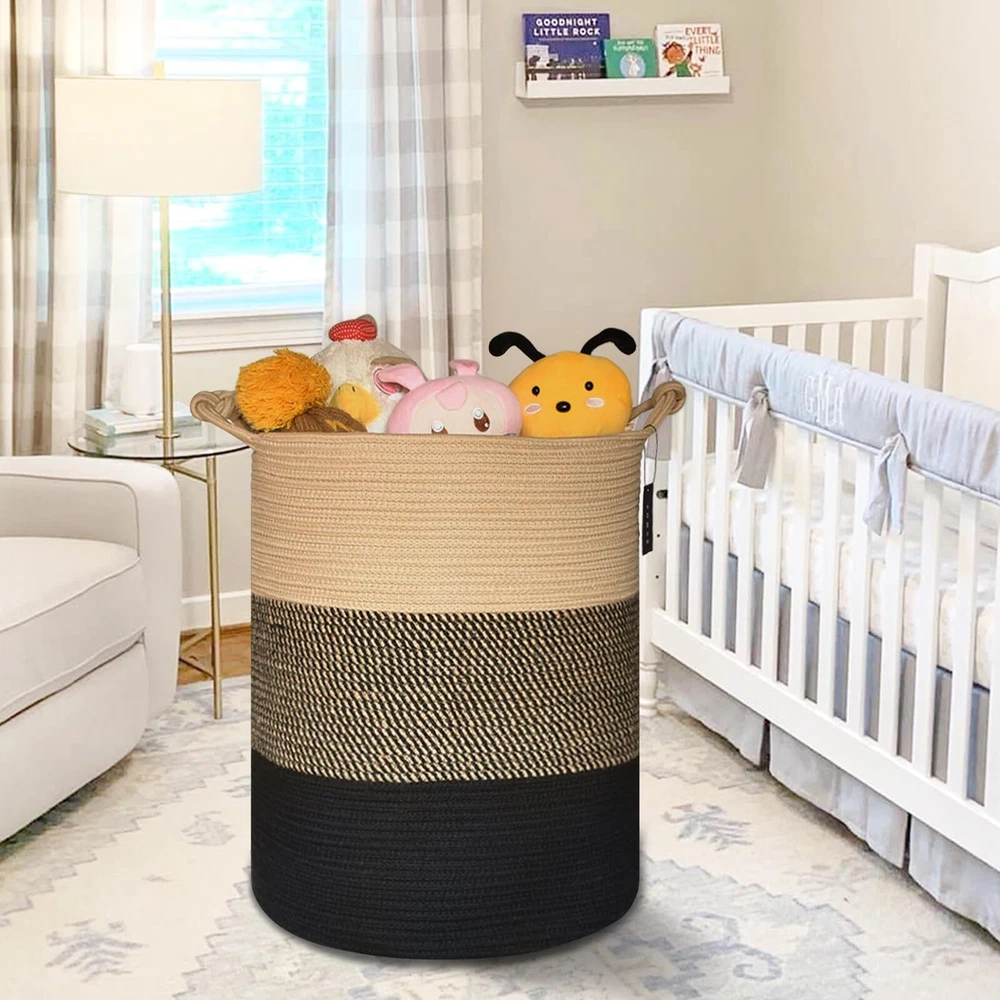 【100% Cotton Rope】Healthy material and chemical-free woven basket, safe for kids and pets. 【Soft and Sturdy】Strong and reliable high storage basket, stand up on its own, no collision scratches, perfect to accommodate baby's clothes and other toys in nursery. 【Large Size】15.7" x 21.7", Tall blanket basket which is perfect for throw pillows, blankets, toys, clothing, Comforter or Cushions. Whether it is helping your child develop clean living habits, or as a decorative basket for your friends. With the appearances and practicality, we believe COMSE cotton storage basket is perfect as a gift for Birthdays, Festival. 【Great Design】Durability handles, easy to move and take away. Neutral color design, healthy materials and multiuse design, will also be a unique home decor addition to your home. Perfect for your laundry room, bedroom, kids room, or living room. 【Notes】Laundry basket fold up during transported, it will return to its best shape if filling it with towels or blankets. Fast remove the creases by ironing it. We only offer high quality products so we are sure you will be satisfied with our cotton rope basket. If you have any dissatisfaction, please contact us and We will provide you with a satisfactory solution.