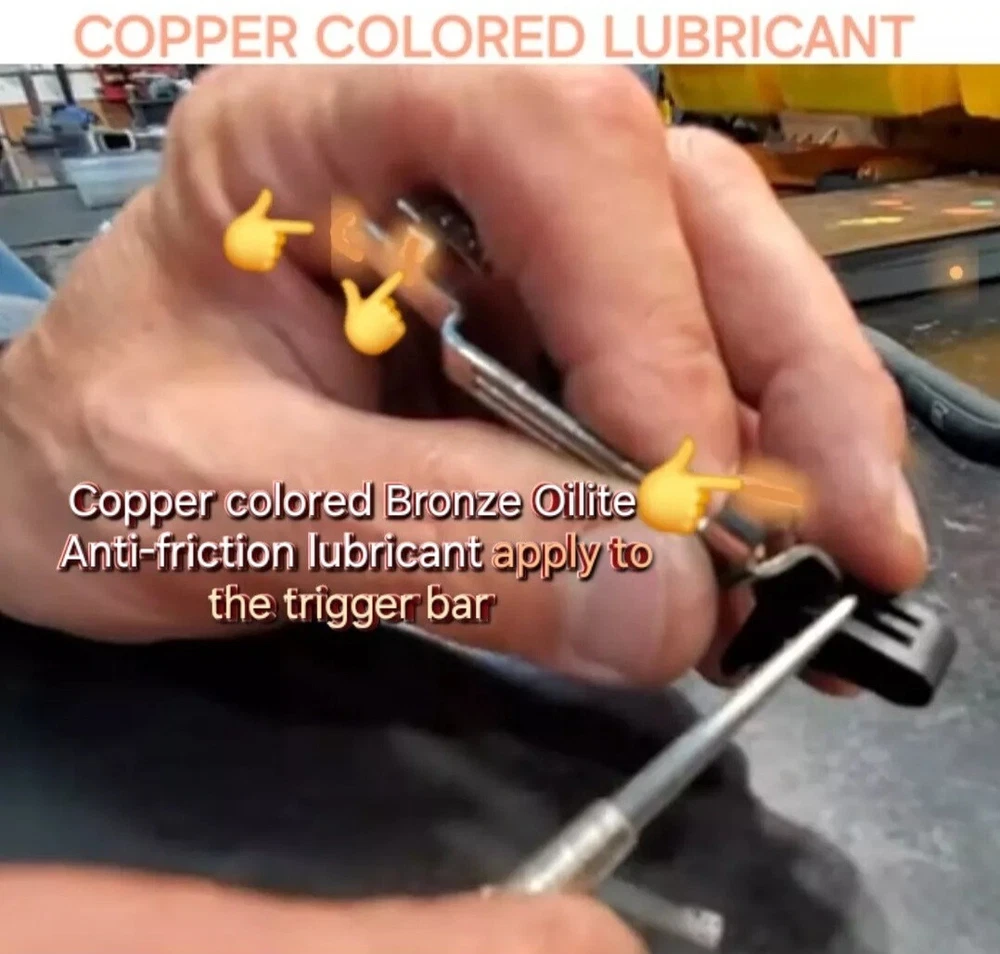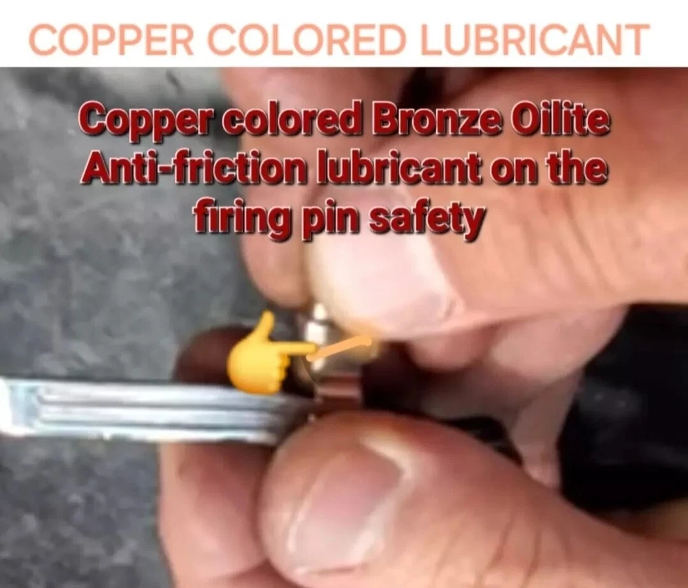5cc 5ML SIZE The perfect gift for the one who has everything GLOCK. Sure will be a surprise! "The copper colored lubricant found on portions of the slide and trigger connector should not be removed...After cleaning...Apply the copper colored lubricant to portions of the frame, slide and trigger connector..."-Glock Inc 2003 Enhance the performance of your GLOCK pistol with this high-performance lubricant. The Bronze Oilite brand offers a saltwaterproof and heavy-duty lubricant that is perfect for all caliber GLOCK pistols. The 5.0ml unit comes with a syringe for easy application. This lubricant is designed to ensure smooth operation and prevent wear and tear on your GLOCK pistol. It is made of high-quality bronze copper material and contains a copper-colored lubricant that is perfect for enhancing the aesthetic appeal of your pistol. The item weighs only 5.0ml and is manufactured in the United States. Get your hands on this premium quality lubricant and take the first step towards maintaining the optimal performance of your GLOCK pistol. GLOCK The spirit of the age is to make you forget. To forget the genius of Gaston Glock. To not remember the copper colored lubricant found on portions on the inside of new glock pistols. To not remember the instructions of "Should Not Be Removed " To not remember the Glock endurance test of one million rounds fired from a single pistol. COPPER COLORED LUBRICANT The same anti-friction, anti-seize, high temperature, water resistant, no run, copper grease found in a brand new Glock off the assembly line. When you buy a new Glock, you are NOT supposed to clean off the Bronze Oilite copper grease. You are supposed to let it protect against wear and friction over time by itself. This special Bronze Oilite grease serves two important purposes. First, it works as an anti-friction agent as you break in your gun. Bronze Copper is a much softer metal than steel and the polarized petroleum distillate grease is a lot thicker than basic gun grease, these two factors give more protection than standard gun grease for parts with steel on steel contact that take lots of abuse. The second reason Glock applies this is because when they make a new gun, there is no way to know how long it may sit on the shelf before it is sold. This Bronze Oilite anti-seize is ideal for long-term storage. Will not run like typical gun grease or gun oil. This anti-corrosion grease can also be used in place of regular gun grease to protect your springs and magazine spring to keep moisture from rusting them up. Bronze Oilite lubrication can also be used in other firearms as well. Just a dab of this at a time because a little of this copper colored lubricant goes a long way. Place a small drop on the rails and some other metal on metal contact areas or anywhere else you would use traditional gun grease. The spirit of the age is to forget the Glock endurance test of 1 million rounds fired from a single Glock 17 with only this proven superior copper colored lubricant inside. Without breaking a single part and only replacing worn magazines. Unmatched performance from a single pistol, with credit going to the copper colored lubrication that no other wet oil or gun grease can provide. ◇ Glock endurance tested 1 million rounds fired from a single pistol* Anti-friction...IMPORTANT INSTRUCTIONS: DO NOT DILUTE. The Bronze Oilite ball bearings are designed to attach to the pores of the steel and rotate freely in the Polarized petroleum distillates. ◇*08-02-2010 | 12:44 PM SJgunguy24 *The old National Shooting Club in Santa Clara had a G 17 that had 1,000,000 rounds. The Glock factory purchased back that pistol for testing. My 17 is close to 50K