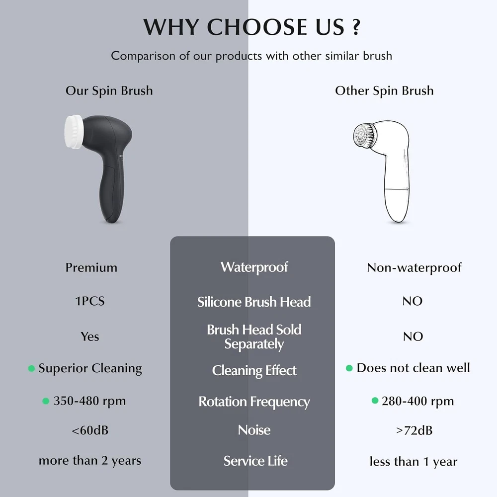 Store New Arrivals Add to Favorite View Feedback Contact COSLUS Facial Cleansing Brush Silicone Face Scrubber: 7 in 1 FBS-D Electric Exfoliating Rotating Massage Device Waterproof Deep Cleaning Exfoliation Spa Machine - Electronic Skin Care Wash System Description Item model number P2017 Item dimensions L x W x H 5.11 x 2.36 x 1.37 inches Power Source Battery Powered Color Black Product Dimensions 5.11 x 2.36 x 1.37 inches; 8.16 ounces Material Silicone, Plastic Country of Origin China Manufacturer COSLUS Brand COSLUS Size With 7 brush heads AII IN ONE CLEANSING SYSTEM: This facial cleansing brush contains 2 bristle brush heads of different sizes,1 silicone brush head,1 pumice stone, 1 makeup remover sponge, 1 rolling massage brush head, 1 exfoliating brush head , for a total of 7 brush heads, suitable for all skin types including sensitive skin, which can meet a variety of cleansing and skincare needs including removes whitehead, remove blackheads, deep pore cleansing, makeup removal and more SUPERIOR PERFORMANCE & DURABLE: We are committed to making the quality better through experimental comparison. The motor of our face brush far exceeds the market level, provides twice the power of regular roating brushes. It is equipped with three cleansing bristle brush heads for replacement to ensure clean use as well as a durability to make your skin healthier GENTLE EXFOLIATING & DEEP CLEANSING: Our facial scrubber tool have 2 rotation speeds meet the cleansing needs, including: low-speed gentle exfoliating and daily cleansing, high-speed deep cleansing pores and exfoliates dead skin, The motor is designed to provide sufficient rotation power for the facial brush, which is 6 times more effective than washing by hands PREMIUM WATERPROOF AND SAFE DURING SHOWER: This facial exfoliating brush is IPX7 waterproof, making it safe to use in the shower. For the facial cleansing brush to last, we sincerely recommend that you keep the battery compartment dry and do not submerge the entire facial brush in water ; Does not include 2 AA batteries BEST CHOICE FOR YOUR LOVED ONES: Our cleansing brush kit comes in a small size with exchangeable brushes, comfortable grips, and excellent design. It is a best choice for your loved ones. This facial cleansing brush is suitable for all age groups, providing gentle cleansing for teenage skin and deep cleansing for mature skin, offering a skincare experience for the whole family. Send them beauty, make them more confident SEPARATELY REPLACEMENT HEADS:Only Compatible with 7 in 1 FBS-D Facial Cleansing Brush Replacement Heads with 4 PCS Product Description 1 100% Waterproof 2 Super Power 3 Deep Cleansing 1 Silicone Brush Head 2 Rolling Massage Head 3 Bristles Brush Head Add to Cart Add to Cart Add to Cart Add to Cart Customer Reviews 4.5 out of 5 stars 209 4.5 out of 5 stars 91 4.3 out of 5 stars 1,387 4.3 out of 5 stars 663 Price $37.99 $ 37 . 99 $9.99 $ 9 . 99 $29.99 $ 29 . 99 $19.99 $ 19 . 99 Silicone Brush Head ✔ ✔ ✔ ✔ Make-up Sponge ✘ ✔ ✘ ✘ Coarse BristleBrush ✔ ✔ ✔ ✔ Soft Bristle Brush ✔ ✘ ✔ ✔ Ultra Fine Bristle ✔ ✔ ✔ ✔ Pumice Stone ✘ ✔ ✘ ✘ ABOUT US We offer the best prices around on high quality products. Our E-store includes media such as books, movies, music and games while offering electronics, toys, sporting apparel, clothing, tools, general home, garden items and more. SHIPPING We are always working hard to ensure your package arrives as soon as possible. Please understand that some factors like weather, high postal traffic, and the performance of shipping companies are outside of our control. We offer free shipping to the lower 48 states and ship within 2 business days of payment, usually sooner. We do not accept P.O. Boxes. Please provide a physical address. RETURNS We offer a 30-Day Return Policy on items which you are not completely satisfied with. You have the option for a full-refund or an exchange of the item. No returns are available on items shipped outside of the USA. PAYMENT We accept PayPal. CONTACT US This page content is yet to come Please ad us to your favorite seller and visit again later Thank You CUSTOMER SATISFACTION We try our very best to make sure every customer is completely satisfied. If there's a problem, message us! We're happy to help.