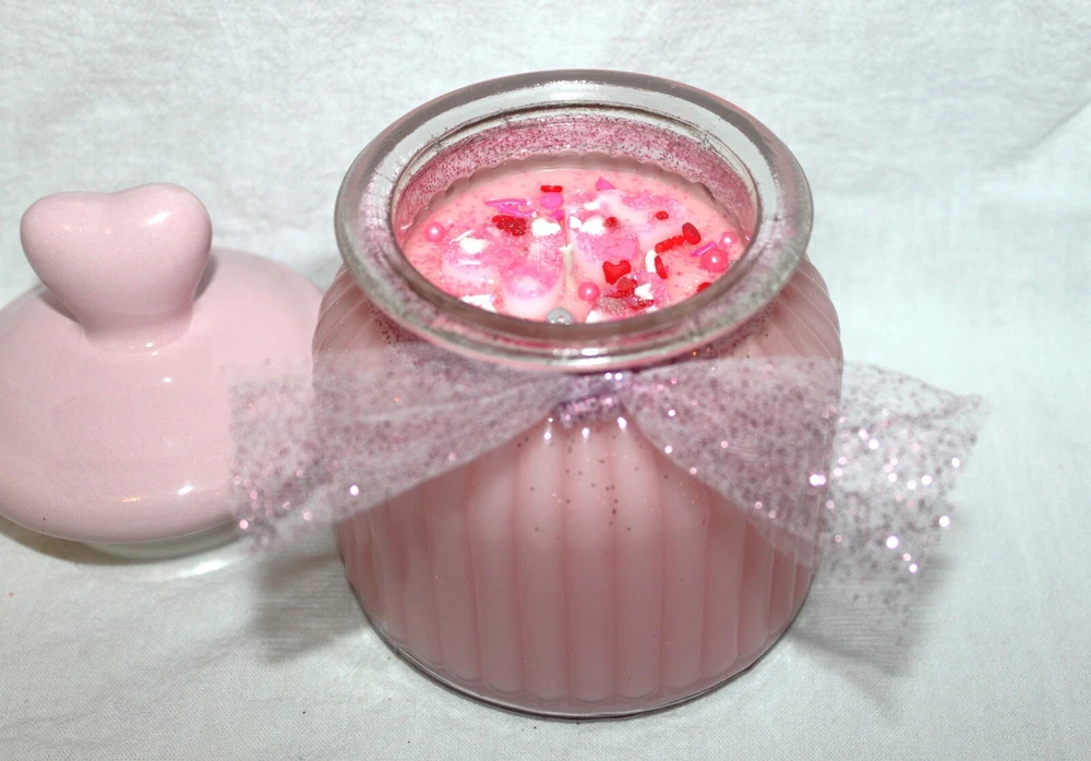 **** SHIPPING IS OFTEN CALCULATED HIGH WHEN PURCHASING MORE THAN 1 ITEM SO FEEL FREE TO MESSAGE ME FOR A SHIPPING QUOTE **** When combining purchases please click on "request total from seller" at checkout and wait for me to send you a invoice with combined shipping. If you are using your phone this option may not be available and if so just message me and I can make you a listing with everything combined and the correct amount on shipping. Thank You ;) ** I can make this any scent and color I stock so feel free to message me for a scent and or color change request. ** This is my handmade highly scented 22 oz. Valentine's candle that is made with a special blend of paraffin wax that allows me to add up to 10% more fragrance than most waxes. It is scented to the max with COTTON CANDY. Sweet and fruity cotton candy scent. A blend of fresh strawberry, sugar and sweet vanilla. Takes you back to your childhood! Strong scent throw This Valentine's candle is sure to make that someone special feel loved and admired. It's so pretty and beautifully decorated. On top of the candle I put hearts in the center with Valentine's sprinkles and sugar crystals. I then tied a glittery pink bow around the jar. The lid is a ceramic heart. You can use this as a candy jar or many other things once the candle is gone. Please be sure to check my other listings for terrific smelling candles and tarts to go with your order. International Buyers : Please contact me for shipping quote. Shipping I strive to ship within 48 hours of payment received not including weekends and holidays. I ship USPS Priority or Parcel Post and for the heavier orders I can ship Fed-Ex. I do offer USPS Flat Rate shipping as well. Insurance is the buyers responsibility. I am always happy to combine auctions to save you money on shipping fees. Please email with any shipping questions or quotes if needed. Thanks for stopping by! Please do come back again soon~ WARNING Burn within sight. Keep away from flammable objects. Keep away from children and pets. Burning Instructions: Trim wick to 1/4" before lighting. Keep candle free of any foreign materials including matches and wick trimmings, Only burn the candle on a level, fire resistant surface. Do not burn candle for more than four hours at a time. Stop use when only 1/4" of wax remains. International Buyers : Please contact me for shipping quote. Shipping I strive to ship within 48 hours of payment received not including weekends and holidays. I ship USPS Priority or Parcel Post and for the heavier orders I can ship Fed-Ex. I do offer USPS Flat Rate shipping as well. Insurance is the buyers responsibility. I am always happy to combine auctions to save you money on shipping fees and I only change actual shipping costs. Please email with any shipping questions or quotes if needed. Thanks for stopping by! Please do come back again soon~ *** Please note I do not accept returns for used merchandise. Must be returned in same condition as received. *** RETURNS ARE ONLY ACCEPTED IF ITEM HAS BEEN MISREPRESENTED