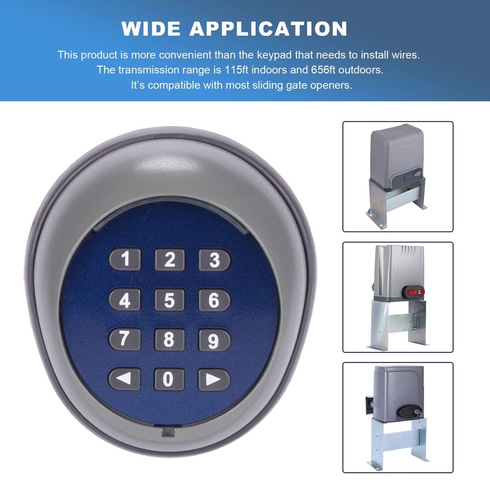WIRELESS KEYPAD: Level up your home security system with this wireless smart door lock opener; its advanced design and heavy-duty construction boost your home security while offering the convenience of a keyless entry. SUPERIOR SECURITY: The dual channel transmitter activates only after receiving the compatible code, while its advanced rolling code technology ensures the transmitted code changes every time you use our keypad for exceptional safety. STRONG SIGNAL: The transmission range of this keypad is 656 feet in open space and 115 feet indoors; its strong signal ensures it quickly connects to any 433.92 MHz CO-Z gate opener. LASTING DURABILITY: The sturdy waterproof thermoplastic construction offers years of dependable service, rain or shine; our wireless keypad's battery lasts up to 2 years at 10 transmissions per day. 1 YEAR WARRANTY: Order this reliable wireless CO-Z keypad with your peace of mind assured thanks to its strong 1 year warranty and our usual friendly 24/7 customer service!