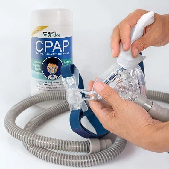 CPAP Mask Cleaning Wipes | Unscented | Alcohol-Free Cleaner | NEW Product Product Features GENTLE CLEAN: MedPro Defense Cpap Mask Wipes gently removes dirt and oils that accumulate in CPAP masks. PERFECT FOR DAILY USE: No need to soak and rinse CPAP masks everyday. Biodegradable, unscented, lint-free, and flushable. 62 wipes per tube. REMOVE DIRT: Removes dirt and oils that accumulate in the CPAP mask. They contain a mild yet effective formula that’s unscented to reduce perfume sensitivity and it contains Vitamin E to help make the wipes gentle on your skin. LINT FREE: CPAP Mask Wipes won't leave any lint fibres after use. Leaves mask clear of debris. HYGIENIC: Quick and easy daily cleaning of your CPAP mask, our resealable package keeps wipes fresh. Product Description Medpro defense CPAP mask wipes gently and naturally remove dirt from CPAP masks. For quick daily cleaning, removes dirt and oils that accumulate in CPAP masks. Lint free, Biodegradable, unscented, flushable.