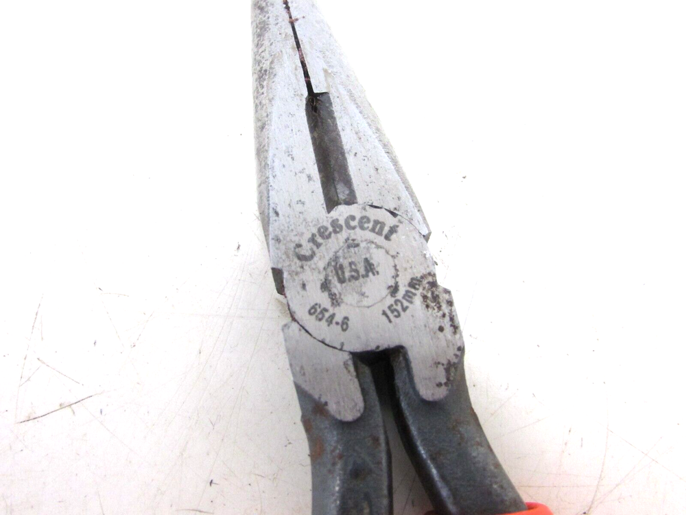 THIS IS A USED ITEM CRESCENT TOOL CO. 654-6 6” NEEDLE NOSE PLIERS SERRATED JAWS RED DIPPED GRIPS Made in USA NEVER USED! WE ALWAYS HAVE SEVERAL AUCTIONS RUNNING WITH QUALITY NAME BRAND TOOLS...CHECK THEM OUT! 16-B