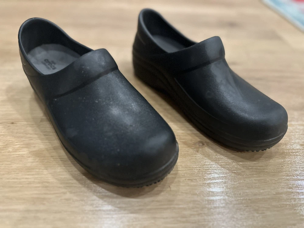 Slip into effortless comfort with the CROCS 205384 Comfort Neria Pro II Clog Shoe, a perfect blend of practicality and style. Designed with a versatile black hue, these clogs are a snug Women’s Size 9, tailored to provide a seamless fit for your active lifestyle. Whether you're engaged in casual wear, activewear, or workwear, these clogs offer a low heel height and a durable rubber outsole for steady traction and comfort. The Neria Pro II model boasts a cushioned insole and a synthetic lining, ensuring your feet remain cramp-free throughout the day. The solid pattern and garden/work theme resonate with a professional aesthetic, while the slip-on closure ensures easy on-and-off wearability. With a robust synthetic upper material and a robust rubber outsole, these clogs are ready to tackle any season, be it winter, summer, spring, or fall.