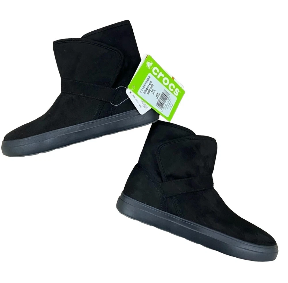 CROCS Lodgepoint Synthetic Suede Bootie Women's Black Size 6.