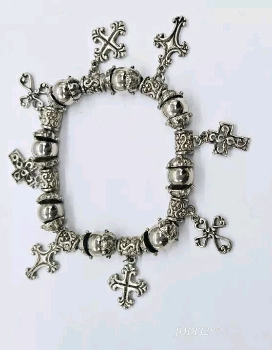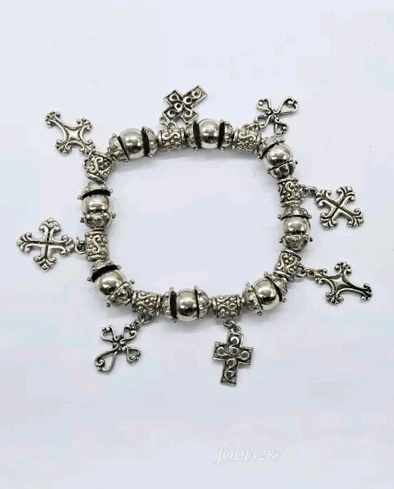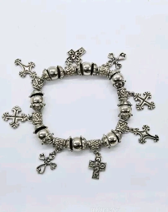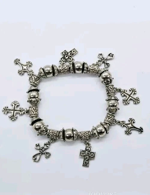 CROSS Statement STRETCH Bracelet Silver tone Dangle Beaded One Size