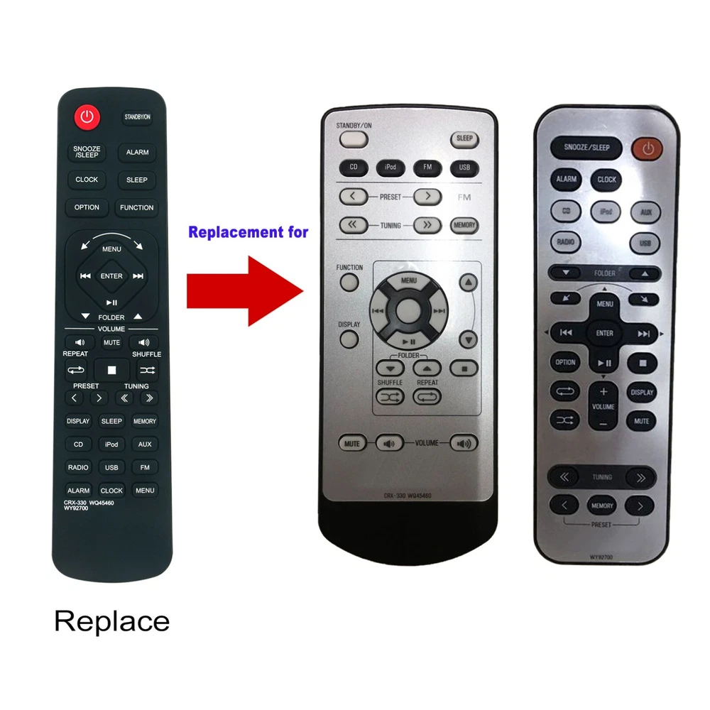 New Replaced Remote Control Compatible with Yamaha CD Receiver No programming or pairing needed, just install 2 new AAA alkaline batteries, then it will work. This is a replacement Infrared remote controller. Compatible with Yamaha CD Receiver Models: CRX-330 WQ45460 WY92700 CRX-040 MCR-040 MCR-140 CRX-140 NS-BP80 CRX-332 MCR-230 MCR-330 MCR-332 TSX-112 MCR-330BL CRX-330BL CRX-332BL MCR-230BL TSX-112BL MCR-332BL Package Content: 1 x Infrared Remote Control
