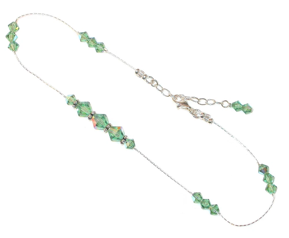 CRYSTAL ANKLE BRACELET Sterling Silver Anklet ERNITE GREEN Swarovski Elements SWAROVSKI CRYSTAL ELEMENTS STERLING SILVER ANKLE BRACELET Color: Ernite Green Choose Your Length: See Size Guide Below Made of: 100% genuine Swarovski Crystal Elements Metal: .925 Sterling Silver This Anklet is designed with genuine Swarovski Crystal Elements, accented with Bali Silver spacers. The multi-faceted crystals catch the light and sparkle beautifully. All silver used is .925 Sterling Silver. It can be made in 3 sizes, each with a 1" extender that allows it to be fastened for maximum comfort. The extender ends with a dainty dangling crystal charm that hangs down from on the end. Hand-crafted in the USA. SIZE GUIDE SMALL Ankle: 8.5" to 9.5" AVERAGE Ankle: 9.5" to 10.5" LARGE Ankle: 10.5" to 11.5" To measure your ankle, use a string. Put it around your ankle where you would like it to be. Make sure to give a little room for walking comfort. Then lay the string along a ruler to find your size. An Original Design by Tina Kincaid Brand New and Made for you! This item comes gift-boxed. Sets may be boxed together, unless otherwise requested at checkout. CHANGE THE COLOR! We stock most Swarovski crystal colors, all which are equally as beautiful in this design. You are welcome to email special requests or color combinations and check for availability. To view a complete lists of color samples, CLICK HERE to see our COLOR COMPARISON CHARTS! Check out my other items ! Be sure to add me to your favorites list ! INTERNATIONAL BUYERS.... PLEASE NOTE! Import duties, taxes and charges are not included in the item price or shipping cost. These charges cannot be determined by me and may be imposed by your country and are the buyer's responsibility. Please check with your country's customs office to determine what, if any, these additional costs will be prior to bidding or buying.