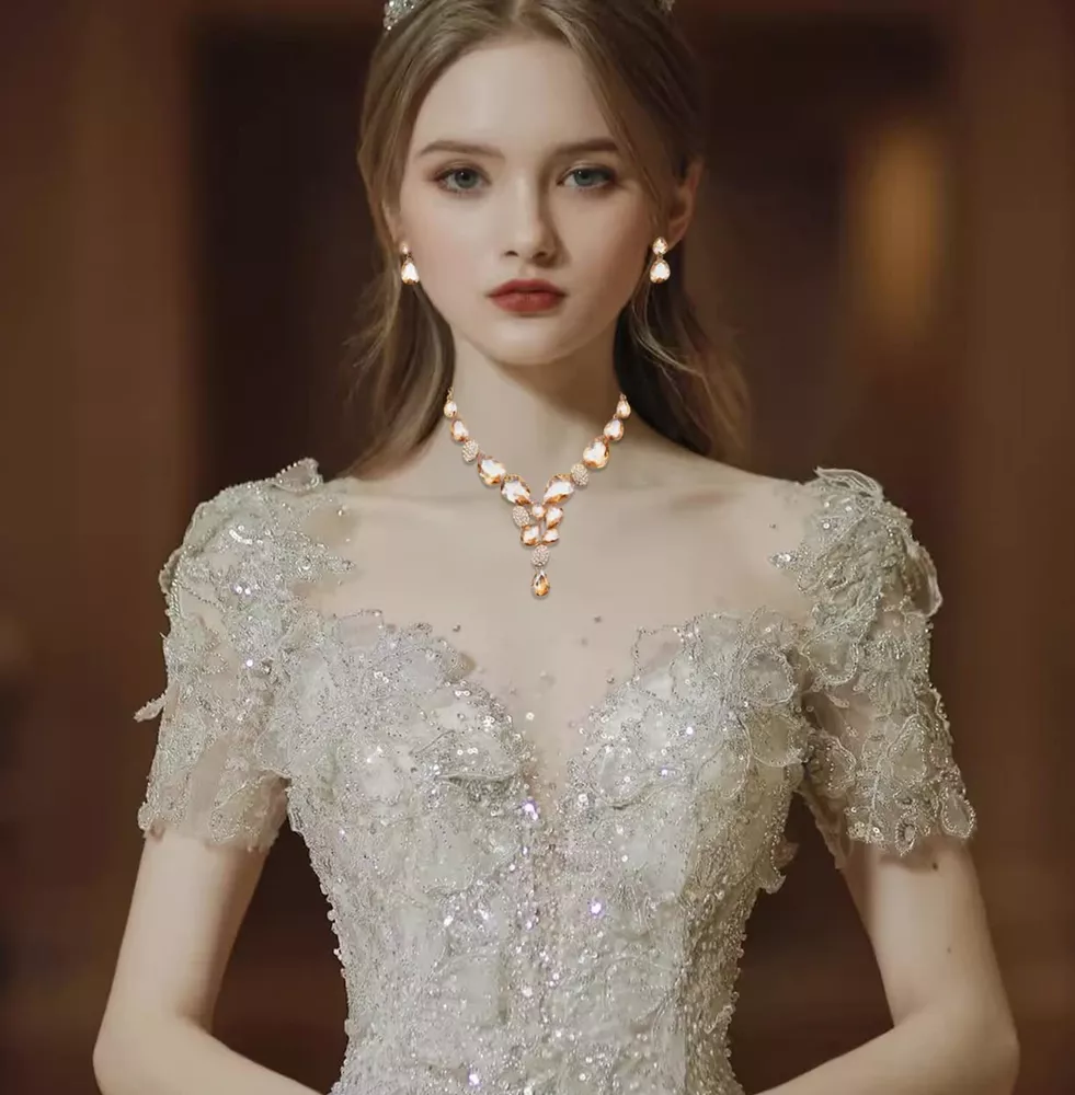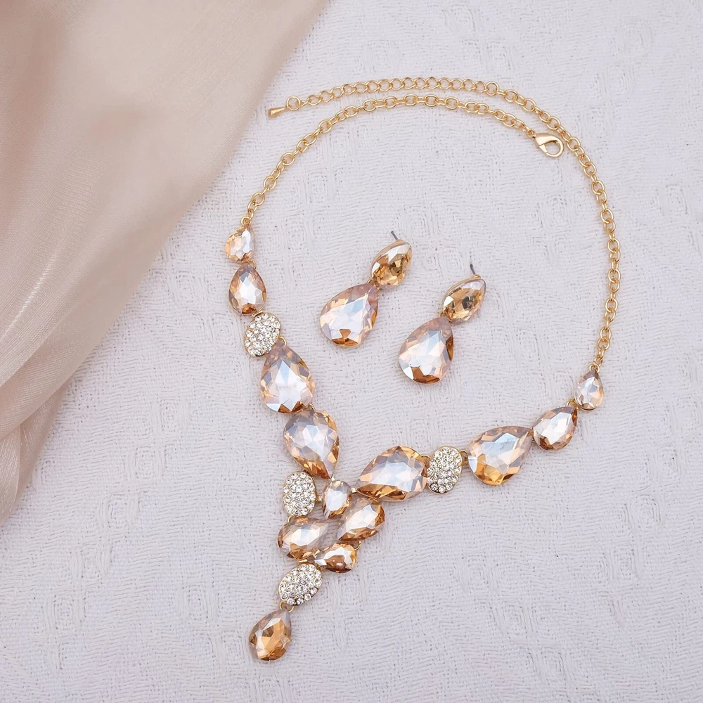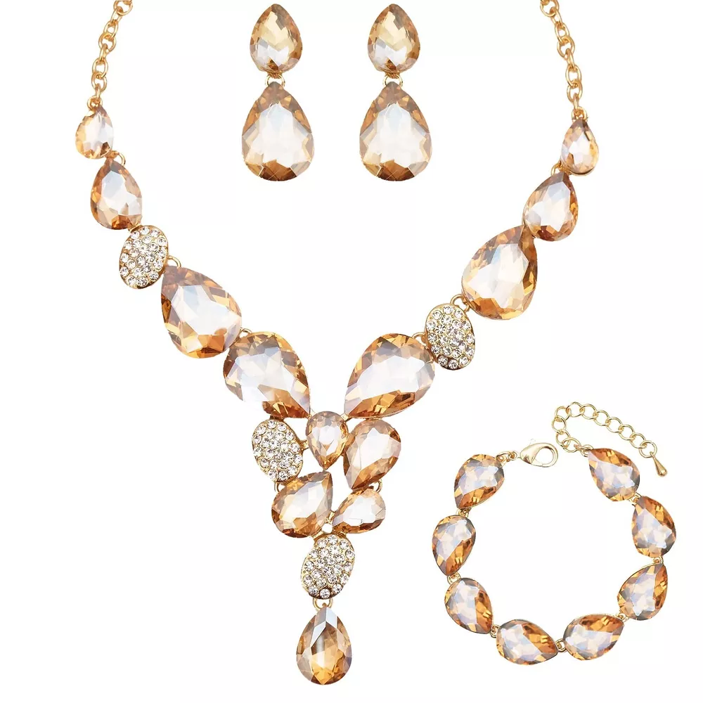 CSY Elegant Austrian Crystal Necklace Drop Earrings Bracelet Set Bridal Wedding Prom Costume Jewelry Sets for Brides Bridesmaid Product Details Color: champagne gold Brand: CSY MPN: Does not apply UPC: Does not apply EAN: Does not apply Department : womens Date First Available : April 20, 2023 Manufacturer : CSY Brand, Seller, or Collection Name: CSY Metal stamp: 14K Metal: Gold plated base Material: Crystal, Rhinestone Gem Type: crystal and rhinestones Setting: Sticking Chain: Mariner Clasp: Lobster Clasp Ring size: Adjustable
