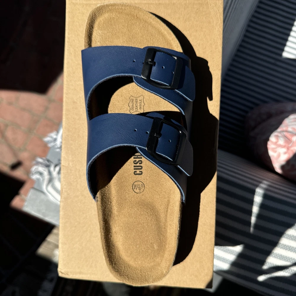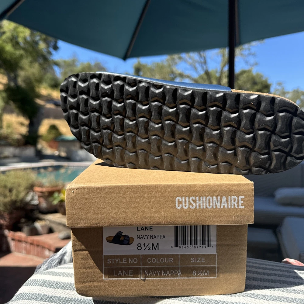 This listing is for one sandal (not a pair) for someone who has only a right foot. Great for amputee. The blue color is very pretty—a little lighter than true navy. The sandal is new in box but I will ship without box. Step into comfort with these CUSHIONAIRE LANE sandals. Designed with a solid pattern and slip-on closure, these sandals feature a blue nappa leather upper and faux leather lining (the insole is real suede leather over a cork footbed). The adjustable strap ensures a secure fit while the cork outsole provides durability and traction. The cushioned insole and footbed make these sandals perfect for those long walks or gardening sessions. These women's sandals come in US shoe size 8.5 and have a flat heel style with a heel height of under 1 inch. The CUSHIONAIRE Footbed product line ensures that you get the ultimate comfort and support while wearing these sandals. Get your hands on these sandals today and experience the perfect blend of style and comfort.