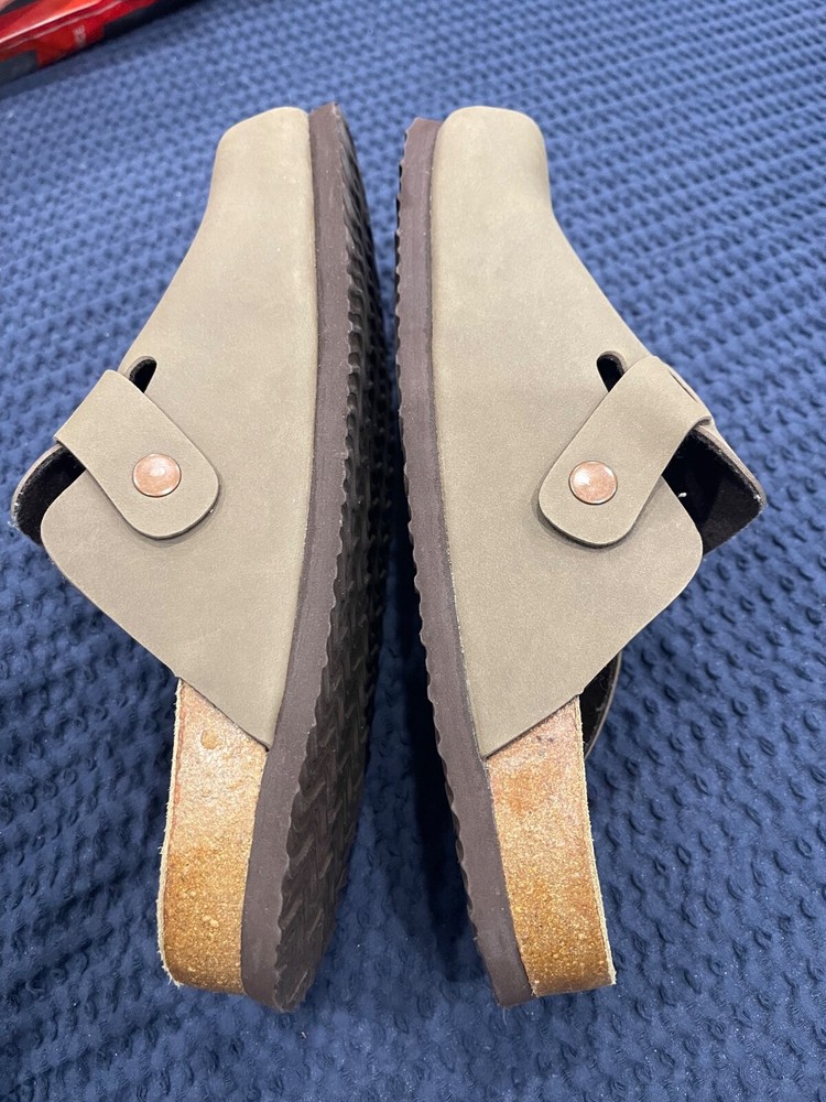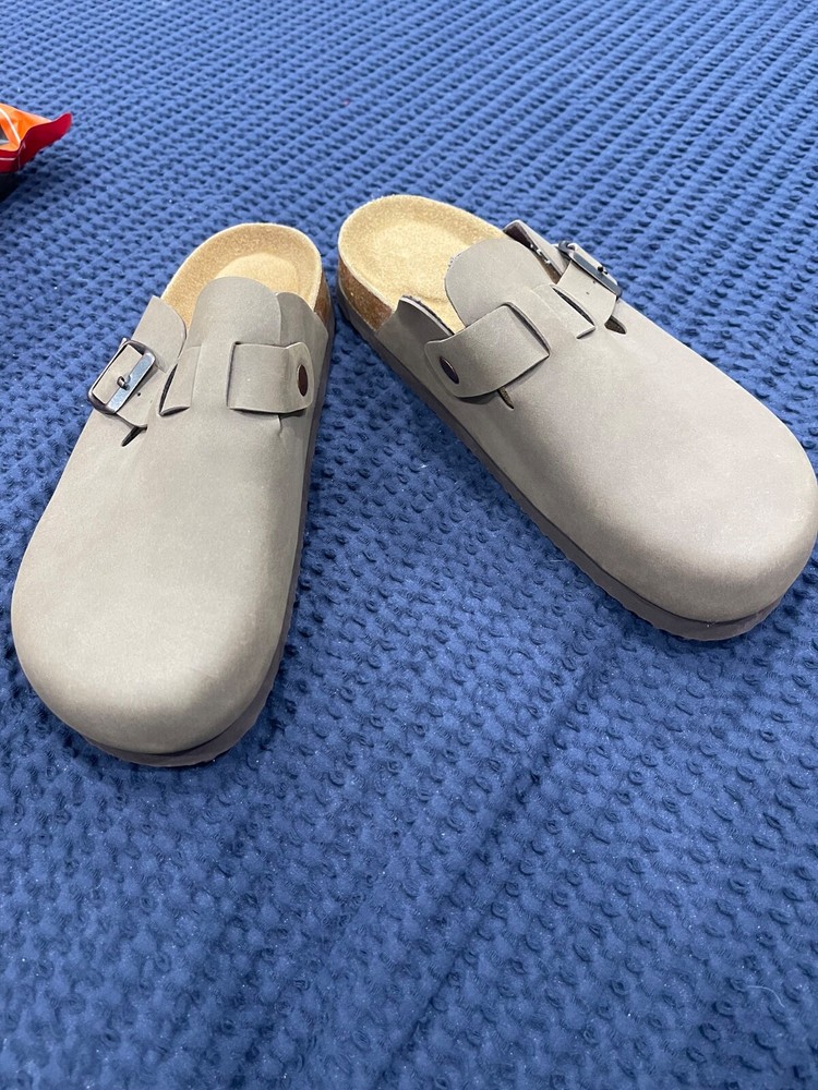 Elevate your daily comfort with the CUSHIONAIRE Women's Hana Cork Clog. These size 8.5 sandals feature a sleek beige leather upper complemented by a tasteful buckle accent, blending style with ease-of-wear. The slip-on design ensures convenience while the flat heel maintains a level stride.Crafted for those who value foot comfort, the Hana model boasts a signature cushioned footbed supported by a durable cork base. Whether you're navigating city streets or enjoying a casual day out, these clogs offer a harmonious combination of sophistication and all-day ease.