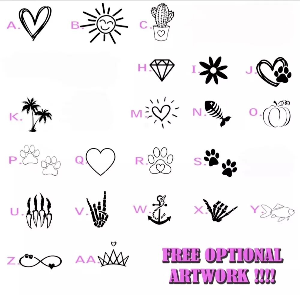 CUSTOM ENGRAVED PERSONALIZED PET TAG DOUBLE SIDED . ORDER DIRECTIONS AT BOTTOM !! Description These durable, long-lasting tags has plenty of room to customize with your pet's name, address and emergency contact information—pets name on front (with optional design) and emergency number on the back. These tags are made in multiple sizes, and styles to suit all breeds. This tag is designed to stand up for years. Key Benefits These tags can be personalized with color, font, art, and number on the back. The print is designed to hold up for years. Multiple shapes to choose from. Available in different colors.. Available in multiple sizes to suit dogs and cats of any stature—from a tiny Yorkie to a massive Bull Mastiff. What's Included in your package? 1. Split ring attachment. 1. Personalized tag. HOW TO ORDER: When ordering multiple tags choose one tag at a time then customize and add that tag to your cart. Come back to the listing and repeat those steps with as many tags as you wish. After adding all the tags to the cart your discount will automatically be applied. IMPORTANT : If you're wanting multiple lines on the front the FONT WILL BE SMALLER in conjunction to the tag size. We HIGHLY SUGGEST JUST THE PETS NAME on the front of small and extra small tags ....but we will print what you would like :-). IN THE DROP DOWN OPTIONS. 1.CHOOSE TAG PET STYLE 2. CHOOSE SIZE 3. CHOOSE COLOR IN THE BOX FOR CUSTOMIZATION. 1. name on front 2. font for pet name (1-9) 3. art work letter (A-K) (this is optional) 4. phone number or other info for the back ( BACK INFORMATION WILL BE IN ARIAL FONT FOR LEGIBILITY ) (YOU CAN ALSO TYPE "SURPRISE ME" AFTER YOU ENTER YOUR PETS NAME AND I WILL PERSONALLY CHOOSE A FONT & ART WORK THAT I THINK LOOKS BEST!! ) ***** PLEASE NOTE THAT TRACKING INFORMATION WILL ONLY BE AVAILABLE FOR ORDERS $10 OR MORE !! BEING THAT TRACKING COST RANGE FROM $3.88-$4.88 IT IS THE ONLY WAY TO KEEP PRICES AS LOW AS POSSIBLE !! :) ******