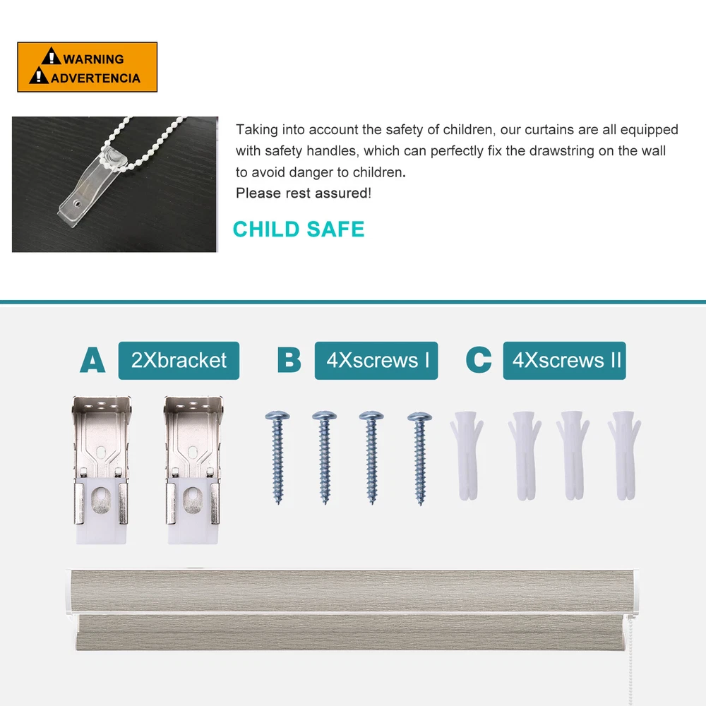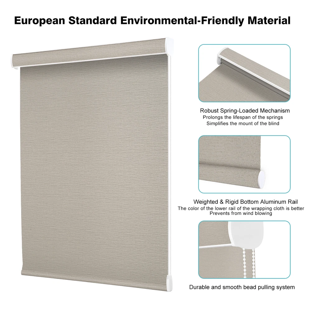 Details: it will stay at whatever position you stop; the bottom aluminum bar is weighted and rigid so it hangs flat and prevents from wind blowing Unique knitted breathable sunscreen fabric lets the desired amount of natural light and fresh air in and allow you to enjoy the outside view while still providing privacy; great for light filtering or sun protection from the harsh UV rays; the constant color filters the sunlight nicely Our roll-up shade is made of thick and durable partially transparent sunscreen fabric (70% PVC and 30% Polyester); the environmentally friendly material resists moisture, water, fading, and heat, and it is also easy to clean Changshade robust spring-loaded mechanism has passed 5,000 times usual lifting or pulling down tests for each blind and makes it easy to raise and lower the blind evenly and smoothly back up every time; our roll-up mechanism prolongs the lifespan of the springs and simplifies the mount of the blind Installation brackets, mounting hardware, mounting video and instructions are provided for quick and easy inside or outside mount; it can be easily removed and still able to pull down the blind with ease; easy measurement and fitting; Aabout Light Blocking Strips: HOW IT WORKS: All blinds need to be made slightly smaller than the window opening to prevent the fabric from rubbing against the wall when the blackout shade is raised or lowered. L-shaped light blockers are a piece of plastic that is placed in front or behind the blinds to help you get a better blackout. BLOCK OF LIGHT: Changshade light blocking strips prevent light gaps on blinds and windows. These window blinds have side tracks that will dramatically reduce the light transmission through side window blinds and shades. Great for bedrooms, living rooms, bathrooms, kitchens, and offices. EASY TO CUT: Light blockers can be trimmed to fit your window size. Great for INSIDE MOUNT. Very easy to cut them with sturdy kitchen scissors, knives, or a hacksaw. These blockers pair perfectly with all blinds and shades from the changshade Brand. Standard size: 40” L x 1” W x 0.6” H. EASY TO USE: Our light blocking sides are easy to install. Simply peel off the adhesive backing and attach it to the side of the window. The blackout side rails should be placed as close as possible to the blackout curtains for maximum coverage. Suitable for cellular blinds, roller blinds, shutters, Roman shades, etc. Notice:Our blinds are suitable for installation inside or outside the window frame. If you chose the former, you need a window frame that is at least 2 inches depth.The blind width is for total roller blind including hardware space on each side(total 1.5 inch, 0.75 inch each side), not just for fabric width.See picture description for other details. Tell us the size of your window and we will recommend the most suitable shade for you. All shades and blinds produced by our company can be customized. Please feel free to contact us . Shipping Method: It takes about 7-15 days from place an order to reaching the customer.The tracking number will be given within 3 days after the purchase. Warranty: we offers a one-year warranty; we want you to buy with confidence anytime you purchase products from our store. We provides professional customer service before and after purchase. Contact: We stand firmly behind our products and keep striving for the finest. If there is any problem with your usage in the future, please feel free to let us know. Feedback: Please leave us a good feedback upon receipt of the items. In case, if not satisfied, please contact us for solution. Satisfaction guaranteed. Return Policy: We fully guarantee Customers benefit within 30 business days if item DOA(damage on arrival)and please contact us within 30 days from the delivery date to exchange or refund. No need click "Return", please just contact us via Ebay Message. You will get the replacement or refund through the communication between us.