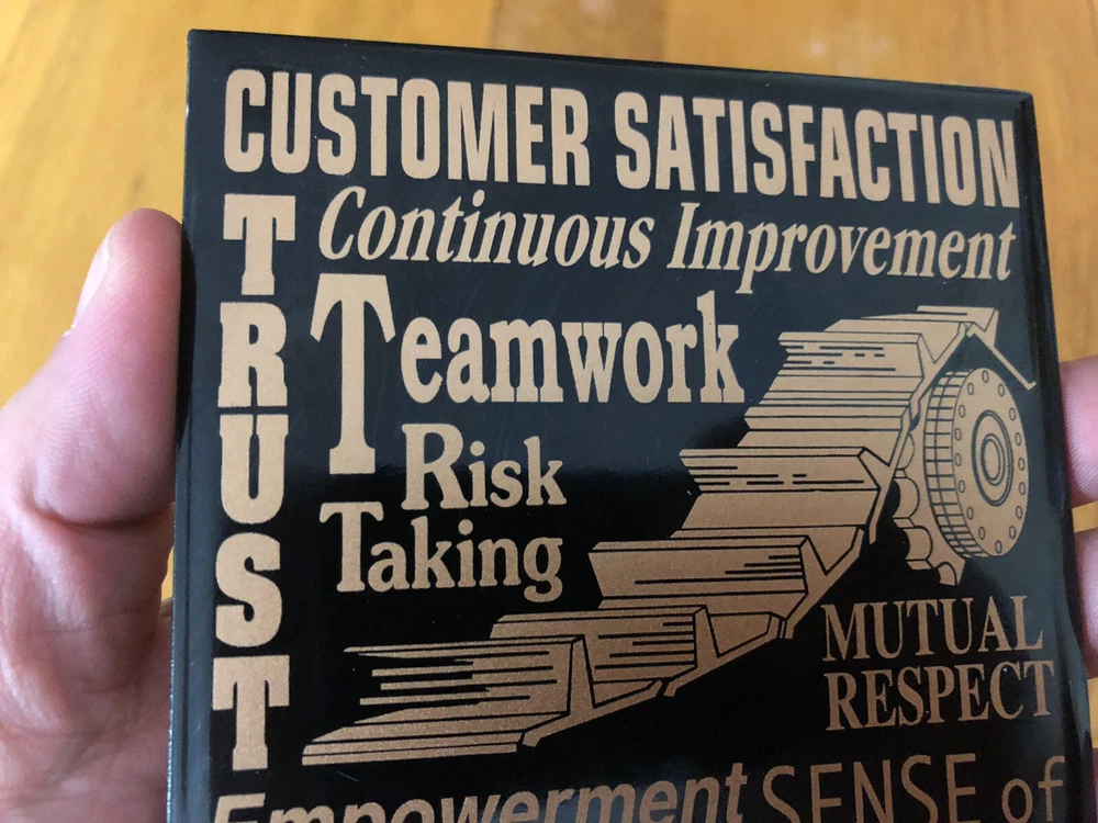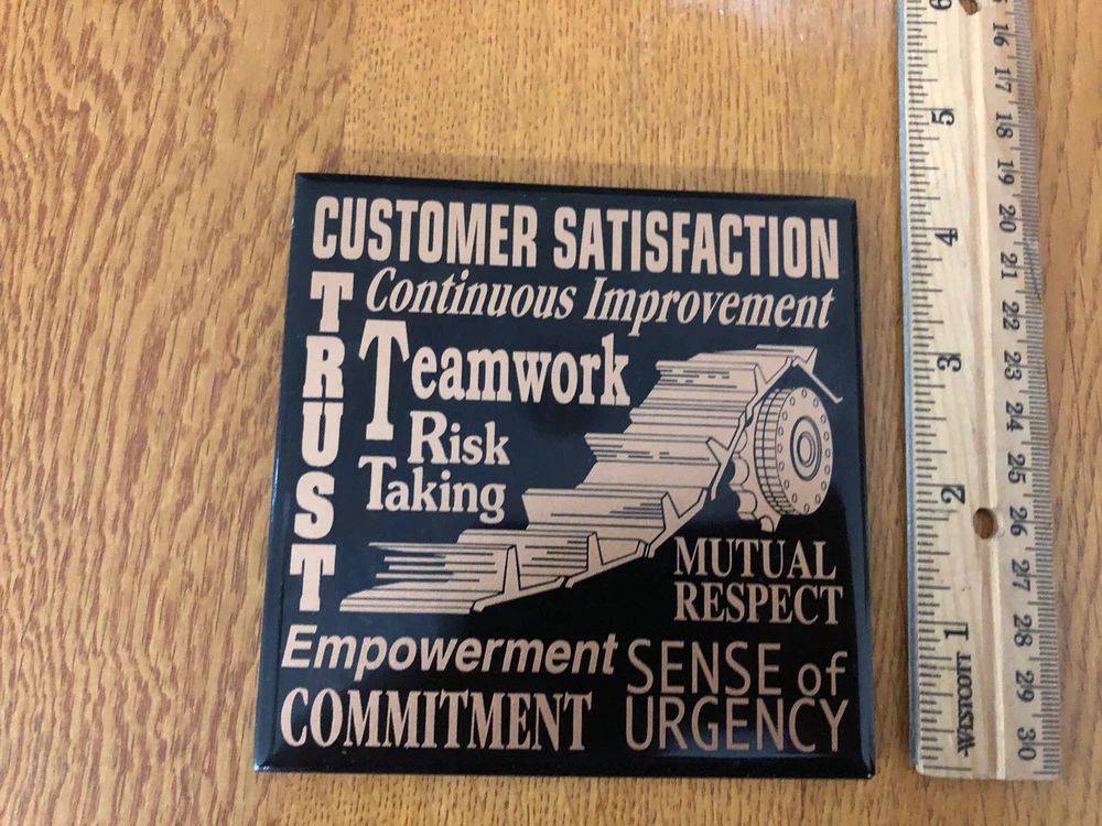 CUSTOMER SATISFACTION TEAMWORK SQUARE MOTIVATIONAL HOT PLATE TILE 4.25”X4.25”. Shipped USPS. Great Looking Hot Plate Motivational Tile!
