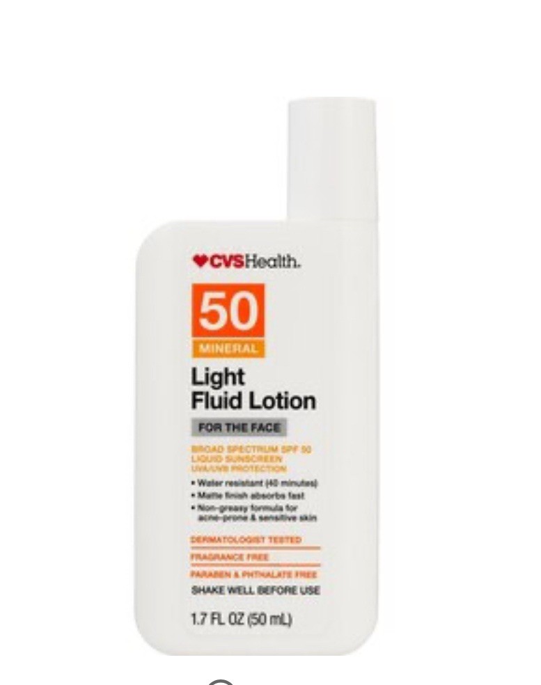 CVS Health Mineral Sunscreen for Face SPF 50..1.7oz. Brand new in box. Expiration 04/2027. Mineral SPF moisturizer for sensitive skin with broadband spectrum of 50 UVA/UVB protection. This face sunscreen lotion is both water-resistant and oil free. Water resistant up to 40 minutes. Protects skin from free radicals Fragrance free, oil-free, Paraben free, non-whitening