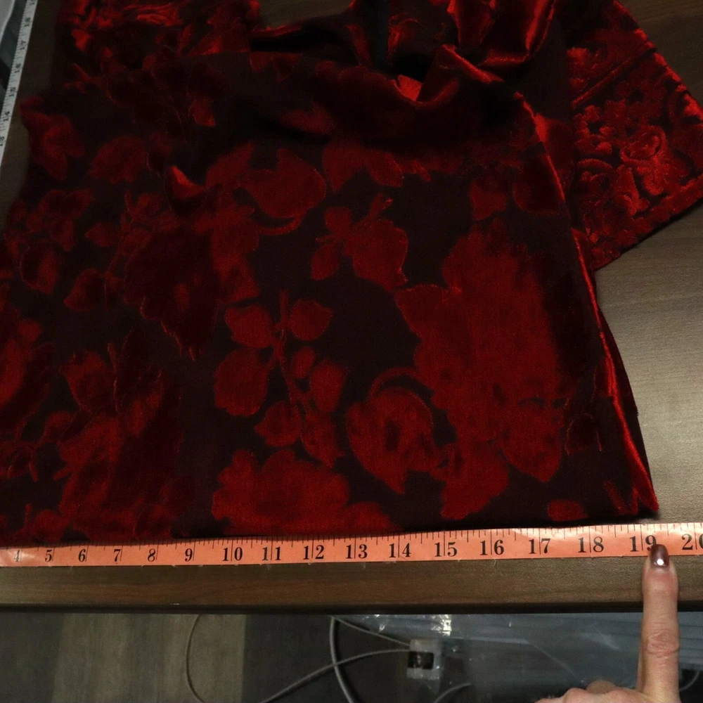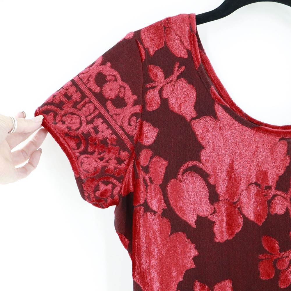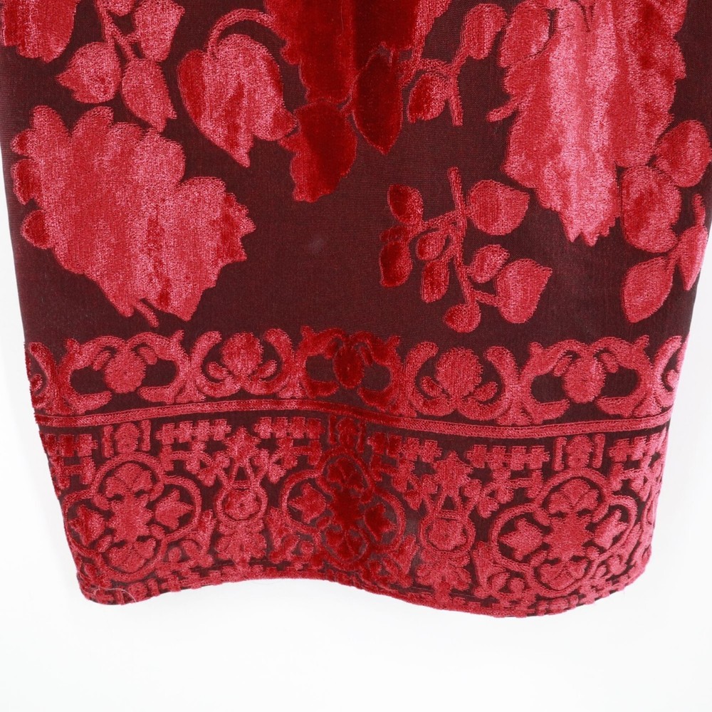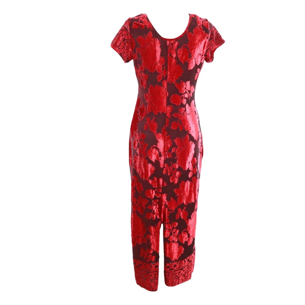 Step out in this dress and watch as heads turn faster than a whirling dervish at a disco party. The floral burnout velvet design makes you look like a walking bouquet, perfect for those who want to bring a touch of whimsy to their wardrobe. • Short sleeves • Floral burnout velvet • Scoop neckline • Long length • Intricate hem design • Ideal for evening wear, cocktail party and special events Features: y2k, vintage, burnout velvet, gypsy, whimsigoth, boho, dark feminine, floral, bohemian, brunch, elegant, classic, retro, formal, events, evening wear, party, cocktail Size: Womens MP Condition: Pre-Owned Good Great pre-owned condition, see photos for details. No size or material tags, use measurements. Tiny snag on front and snag on back.