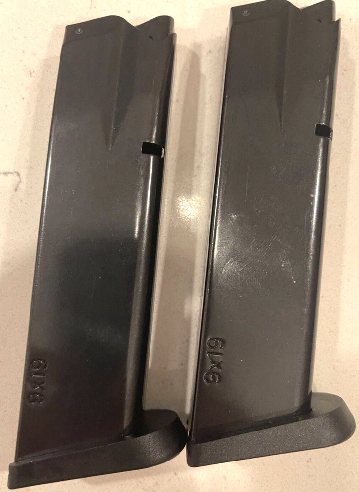 CZ 75/85/SP-01 Full Size 9MM & Clones – Jericho 941, Tanfoglio& CZ75 Clones **Pack of 2 Magazines** 10 Round Capacity Blued Steel Magazine Caliber: 9mm x 19 Capacity: 10 Rounds Material: Steel Body, Polymer Follower Marked: 9 x 19 High quality magazines - guaranteedflawless fit and function. FAST - First Class Mail shipping Will only ship to Addresses in the USA Fast Shipping!