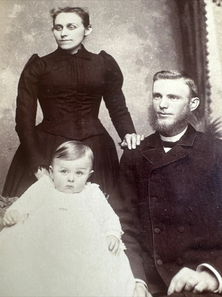 This stunning cabinet card features a precious Victorian couple and their daughter, captured by photographer Issac U Doust in Syracuse, New York in the late 1800s. The photograph showcases the family's exquisite fashion sense and provides a glimpse into the era's style. The card is in vintage condition and would make a fantastic addition to any collection of antique photographs. The cabinet photo measures [insert measurement here] and is in the format of a cabinet card. The photograph's antique quality and stunning theme make it a must-have for any collector of vintage photographs. Don't miss your chance to own a piece of history with this beautiful Victorian photograph. 4.25x6.5" Our Terms Shipping and Handling for our Photographs is $5.00. This rate is good for a single photograph or unlimited number of photographs. We ship First Class by USPS with bubble mailers when your total order is less than $100.00. If your total order exceeds $100, we will ship by USPS Priority Mail. All packages shipped will include a tracking number. We have a 14-day return policy for all items. We will leave feedback when your item is packaged and shipped. Please return this feedback as our receipt you have received the item. SJ
