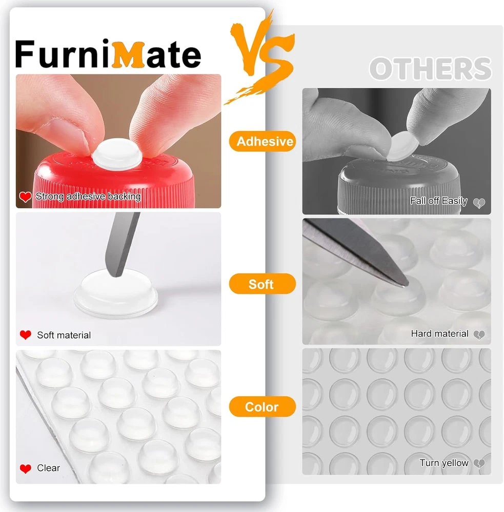 Store New Arrivals Add to Favorite View Feedback Contact Cabinet Door Bumper 128PCS- Cabinet Bumpers Clear, Cabinet Stoppers Rubber Bumpers for Cabinet Doors Cushions Soft Close Sound Dampening 1/2 Inch Description Item model number 128 Cylinder Unit Count 128 Count Number of Pieces 128 Number of Items 100 Color Clear Bumpers Pads Product Dimensions 0.5"L x 0.5"W x 0.15"Th Material Polyurethane Country of Origin China Grip Material Rubber Item Weight 2.08 ounces Shape Round Recommended Uses For Product Cabinet Surface Recommendation Hardwood Model 128 Cylinder Manufacturer FurniMate Special Feature Durable,Premium Brand FURNIMATE Size Clear ❤️STRONG ADHESIVE BACKING❤️ Premium cabinet door bumpers have a very sticky self-adhesive backing to ensure the pads stay in place. The cabinet door bumper are made of soft and eco-friendly polyurethane, safe for the environment. ❤️HANDY VARIETY PACK❤️ Our 128 PCS pack contains cabinet door bumpers clear of 0.5" in diameter and 0.15" in height. They are suitable for any furniture and household items: cabinets, drawers, doors, table tops, laptop, cutting boards, picture frames, etc. ❤️DAMPEN CUSHION PROTECT❤️ These cabinet door bumpers clear work best for softening cabinet doors from slamming, reducing noise in your home. Also ideal to protect and prevent sliding on any surfaces such as glass, plastic, ceramic, wood, etc. ❤️EASY TO APPLY❤️ These cabinet door bumpers clear will be nearly invisible once applied. Simply peel and stick the bumper foot to your required location. Easily peels off without leaving a trace. ❤️CUSTOMER SERVICE❤️ We take pride in providing the highest quality and most durable cabinet door bumpers on the market. If you have any problem at all, please contact us so that we can resolve your problem. Product Description Are you tired of your cabinet doors making a loud slamming noise when pushed closed? Try placing our self-stick cabinet door bumpers on the corners of your cabinet doors for added protection, noise reduction, and to extend the life of the cabinets. Everyone should have a pack of these bumpers in their home, because you never know when you will have a use for them! These bumpers can be used everywhere and the application possibilities are endless. Why choose these bumper pads? 128 bumper pads in a reusable bag. Super strong self-adhesive. Thick and Soft. Widely used for furniture and household items. Cabinet drawer Door handle Keyboard Add to Cart Add to Cart Add to Cart Add to Cart Add to Cart Add to Cart Customer Reviews 4.6 out of 5 stars 4,294 4.6 out of 5 stars 4,294 4.4 out of 5 stars 1,751 4.6 out of 5 stars 4,026 4.6 out of 5 stars 4,294 4.6 out of 5 stars 2,096 Price $9.99 $ 9 . 99 $6.99 $ 6 . 99 $7.99 $ 7 . 99 $6.99 $ 6 . 99 $6.99 $ 6 . 99 $9.99 $ 9 . 99 Usage For furniture and household items For furniture and household items For door,furniture and appliance. For furniture and household items For furniture and household items For furniture and household items Function Reduce dampen and noise Reduce dampen and noise Reduce dampen and protect wall Reduce dampen and noise Reduce dampen and noise Reduce dampen and noise Material Silicon Silicon Silicon Silicon Silicon Silicon Shape Round, square Round Round Round Round, square Square Color Clear, black Clear, black Clear Clear Black Black Thickness 0.1 inch 0.1 inch 0.4 inch 0.2 inch 0.1 inch 0.3 inch Package Plastic box Sealed bag Sealed bag Sealed bag Sealed bag Sealed bag ABOUT US We offer the best prices around on high quality products. Our E-store includes media such as books, movies, music and games while offering electronics, toys, sporting apparel, clothing, tools, general home, garden items and more. SHIPPING We are always working hard to ensure your package arrives as soon as possible. Please understand that some factors like weather, high postal traffic, and the performance of shipping companies are outside of our control. We offer free shipping to the lower 48 states and ship within 2 business days of payment, usually sooner. We do not accept P.O. Boxes. Please provide a physical address. RETURNS We offer a 30-Day Return Policy on items which you are not completely satisfied with. You have the option for a full-refund or an exchange of the item. No returns are available on items shipped outside of the USA. PAYMENT We accept PayPal. CONTACT US This page content is yet to come Please ad us to your favorite seller and visit again later Thank You CUSTOMER SATISFACTION We try our very best to make sure every customer is completely satisfied. If there's a problem, message us! We're happy to help.