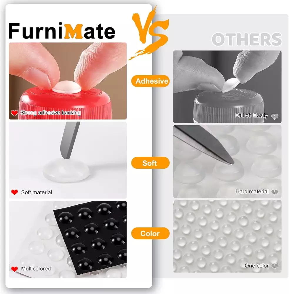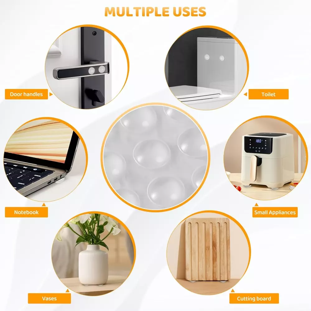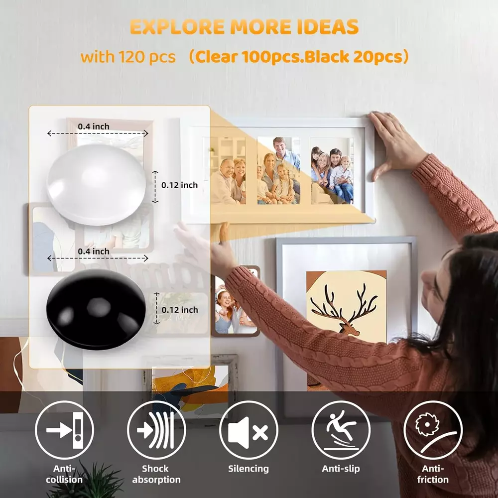 ❤️STRONG ADHESIVE BACKING❤️ Premium bumper pads have a very sticky self-adhesive backing to ensure the pads stay in place. The self adhesive bumper pads are made of soft and eco-friendly polyurethane, safe for the environment. ❤️HANDY VARIETY PACK❤️ Our 120 PCS pack contains adhesive bumper pads of 10mm/0.4" in diameter and 3mm/0.1" in thickness. They are suitable for any furniture and household items: cabinets, drawers, doors, table tops, laptop, cutting boards, picture frames, etc. ❤️DAMPEN CUSHION PROTECT❤️ These adhesive bumper pads work best for softening cabinet doors from slamming, reducing noise in your home. Also ideal to protect and prevent sliding on any surfaces such as glass, plastic, ceramic, wood, etc. ❤️TWO COLOR CHOICES❤️ Available in clear and black, these adhesive furniture bumpers pads will be nearly invisible once applied. Simply peel and stick the bumper foot to your required location. Easily peels off without leaving a trace. ❤️CUSTOMER SERVICE❤️ We take pride in providing the highest quality and most durable felt furniture pads on the market. If you have any problem at all, please contact us so that we can resolve your problem. Product Description Are you tired of your cabinet doors making a loud slamming noise when pushed closed? Try placing our self-stick cabinet door bumpers on the corners of your cabinet doors for added protection, noise reduction, and to extend the life of the cabinets. Looking for a self-adhesive rubber bumper, but you are not sure the right size and shape you need? Everyone should have a pack of these bumpers in their home, because you never know when you will have a use for them! These bumpers can be used everywhere and the application possibilities are endless. Why choose these bumper pads? 120 bumper pads in a reusable bag. Super strong self-adhesive. Thick and Soft. Widely used for furniture and household items. Cabinet drawer Door handle Keyboard