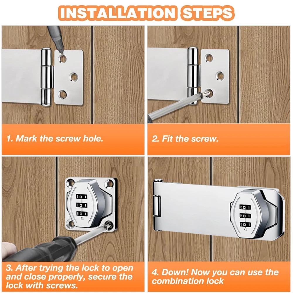 We offer Free Shipping on all order!! Wel come to my stores, The Smart of your choice and satisfaction guarantee. Cabinet Password Hasp Locks 4 Inch, Silver Mechanical Combination Latch Locks, Door Security Slide Latch Locks for Small Doors, Cabinets, Barn Door, Bathroom, Outdoor, Garden Gallery Product Description Color:Silver Material:Zinc cabinet door locks are designed with a 3-digit combination lock so you don't have to carry a key, safe and secure. Features No Keys Required - Our cabinet door locks feature a 3-digit combination lock instead of a combination padlock that requires an additional purchase. This design allows you to eliminate the need to carry keys. Widely Used - This password door latch lock is suitable for all types of doors, ideal for gates, sheds, barn doors, gardens, patios, pet doors, cupboard doors, drawers, storage cabinets, sliding doors etc. Sturdy Material - The combination lock is made of high quality zinc alloy, covered with a coating that makes it waterproof and rustproof, sturdy and long-lasting. Size Reference - Length: 4"(100mm); Width: 1.57"(40mm); Height: 0.75"(20mm). Easy to Install - Simply fit the door latch lock to your door frame, mark the height and mounting holes, then mount the lock to your door jam with the supplied screws. Installation won't take more 5 minutes. Thank you for your business, your trust and your confidence. It is our pleasure to work with our customers. Delivery ☎ If you have any question. Please do not hesitate to contact us. Please send us message via eBay system. We reply every message within 24 hours. If you did not receive our reply. We think maybe we did not receive your message. Please send us message again. Payment Policy ❤ Payment managed by eBay. Shipping Policy We only send the item according to the address on Ebay, the address can't be changed once we pack the item. Please double check your shipping address it before your send the payment. It should take 2-4 business days for the product to reach your destination. If the product doesn't reach your destination within the time limit, please give it an additional 1-2 business days in case of postal delays and/or possible technical issues. We use a selection of shipping services such as UPS, FedEx, USPS etc. We ship only to the 48 contiguous states of America. We do not ship to Hawaii, Alaska, US Protectorates, APO/FPO addresses and PO Boxes. Local pickups are not offered. If it takes any longer than that, please do not hesitate to contact us to resolve the issues. Feedback ❤ We take our reputation seriously, we buy and sell online, so we understand the value of trust. If you are unsatisfied with your order, please contact us and we will work with you to resolve it to your satisfaction. Return Policy - This product comes with 30-Days Money Back Guarantee. - If you receive an item and it doesn't work properly or you don't like it because of any reason at all. - We have a 100% refund/return policy. We will ship you a new item or refund your money for the full sale amount. - For all returned products, buyers MUST contact us for the returning address.