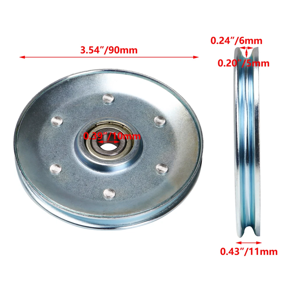 Features: 1.Every product has a unique Manufacturing Part Number label on the inner package that proves it has been qualified,which include Part Number,Model Number and inspection date information; 2.If you have any questions about the item,please provide us the Manufacturing Part Number for checking,your profits will be guaranteed. 3.Mainly made of iron, the middile bearing is made of bearing steel. 4.Application: steel wire rope wheel, transmission equipment, industrial pulley. 5.Outer diameter is 90mm, inner diameter is 10mm, load bearing is 285kg. Note: In-line bearings can't be removed. Specifications: Material: Iron + Bearing Steel Color: Black Brand name: Unbranded Bearing: 285KG Size: 9 x 1 x 1.1cm/3.54 x 0.39 x 0.43 inch(OD x ID x H) Groove Width: 6mm Groove Depth: 5mm Weight: 158g Package include: 1 x Cable Pulley On Apr 1, 2024 at 01:07:07 PDT, seller added the following information:
