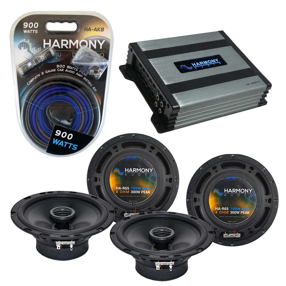 HiFi Sound Connection Car Audio eBay Store 3 day shipping to Continental US unless additional handling About Us Policies & Support Visit our store Office Hours: Mon-Fri: 8:30AM-9:00PM CST | Sat-Sun: 10:00AM-7:00PM CST 3 day shipping to Continental US *unless additional handling Store Categories All Categories Car Audio + - Amplifiers - Amp & Sub Combos - Car Audio Packages - Amp & Speakers Combo - Empty Sub Boxes - Factory Radio - In-Dash Receivers - Motorcycle Speakers - Signal Processors - Snowmobile Speakers - Speakers - Subwoofers - UTV Side by Side Speakers - Kick Panels - Car Speaker Packages Car Audio Accessories + - 12 Volt Power Supplies - Amp Kits - Antennas - Bass Blockers - Batteries - Battery isolator - Capacitors - Cooling Fans - Dash Kits - Distribution Blocks - Fuse Holders - Fuses - Installation Adapters - Installation Harness - Installation Interfaces - Interconnects - iPod Solutions - Neon Lighting - OEM Harness - Signal Path Devices - Sound Damping - Speaker Box Fabric - Subwoofer Grills - Terminals - Wire Harnesses - Wiring - Security Installation - Zune Solutions - Wall Mount Brackets - Other Home Theater + - In Wall Speakers - In Ceiling Speakers - Outdoor Speakers - Receivers - Other Home Theater Accessories + - Interconnects - Structured Wiring - Wall Plates - Cables - Power Supplies - Headphones - MP3 Player Accessories - Speakers - Subwoofers - Other Marine Audio + - Accessories / Remotes - Jetski Speakers - Marine Amplifiers - Marine CD Players - Marine Speakers - Marine Subs - Other Mobile Video + - Custom Fit Headrest Monitors - DVD Players - In-Dash LCD Monitors - License Plate Cameras - Overhead Monitors - Rearview Mirror Monitors - Sun Visor Monitors - Video Installation Parts - Parts & Accessories Musical Instruments + - Instrument Cases - Electric Guitars - Acoustic Guitars - Bass Guitars - Percussion - Parts & Accessories - Other Instruments - Instrument Amplifiers Pro Audio + - Amplifiers - Audio Signal Processing - Cases & Bags - DJ Equipment - Music Production - PA Speakers - Power Conditioning - Recording Equipment - Sound Systems - Wired Microphones - Wireless Microphones - DJ Packages - Parts & Accessories - Mixers Pro Lighting + - Area Effects - Cables - DMX Controllers - Lighting - Mounting Hardware Cases Bags - Parts & Accessories - Lighting Packages Others Show all subcategories Cadillac STS 2005-2011 Factory Speaker Replacement Harmony (2)R65 HA-A400.4 Amp Specifications Description Questions & Answers Cadillac STS 2005-2011 Factory Speaker Replacement Harmony (2)R65 HA-A400.4 Amp SKU: HA-SPK-PACKAGE267-AMP-H This Package Includes the Following Items: 1 x Harmony Audio HA-A400.4 Car Stereo Alloy Amp 4 Channel 800W Fulll Range Speaker or Sub Amplifier 1 x Harmony Audio HA-AK8 Car Stereo Complete 8 Gauge 900W Amp Amplifier Install Kit - Nickel 2 x Harmony Audio HA-65 Car Stereo Rhythm Series 6.5" Replacement 300W Speakers & Grills Harmony Audio HA-A400.4 Car Stereo Alloy Amp 4 Channel 800W Fulll Range Speaker or Sub Amplifier: Specifications : Alloy Series 4 Channel Class D Full Range Amplifier Power Handling: 14.4V @ 4 Ohm Stereo 75 Watts RMS x 4 150 Watts PEAK x 4 14.4V @ 4 Ohm Bridged 200 Watts RMS x 2 400 Watts PEAK x 2 14.4V @ 2 Ohm Stereo 85 Watts RMS x 4 170 Watts PEAK x 4 Frequency Response: 10Hz-30kHz Signal to Noise Ratio: 95dB, A-weighted RCAs: Input Turn On: DC Offset or 12V Remote Recommended External Fuse: 40A Recommended Wiring Power Gauge: 8 Gauge Dimensions: 8-5/8" Width x 6-1/8" Width x 2" Height User Adjustable Settings : Front and Rear Selectable Filter: Full, High Pass or Low Pass Input Type: High or Low Level Signal (Selectable Switch) High Level Input Sensitivity: 2.5V - 40V Low Level Input Sensitivity: 90mV - 10V Gain: (Knob Variable) Low Pass Filter: 50Hz - 500Hz (Knob Variable) High Pass Filter: 50Hz - 2kHz (Knob Variable) Bass Boost: 0dB - 12dB @ 50Hz (Knob Variable) Features : Includes HA-EASY x 2 Speaker Wire to RCA Adapter to Simplify Installation Compatible with both Aftermarket and Factory Source with DC Offset Feature When DC Offset Feature is used Remote Terminal becomes a 12V Output to Turn On Another Device Brushed Aluminum Case with Light Up Blue LED Harmony Logo Power and Protection Light to Easily See Amp Status Harmony Audio HA-AK8 Car Stereo Complete 8 Gauge 900W Amp Amplifier Install Kit - Nickel: Specifications : 17FT Flexible Matte Blue 8GA Power Cable 3FT Flexible Matte Black 8GA Power Cable 20FT Flexible Matte Blue 16GA Speaker Wire 17FT Flexible Matte Gray & Black RCA Cable 17FT Flexible Matte Blue Remote Wire 6FT Split Loom Mini ANL Fuse Holder 80 Amp Mini ANL Fuse (2) 8GA Blue & Black 5/16" Ring Terminals (2) 8GA Blue & Black Spade Terminals (5) 16GA Blue & Black Spade Terminals (4) Pan Head Screws (10) Wire Ties Harmony Audio HA-65 Car Stereo Rhythm Series 6.5" Replacement 300W Speakers & Grills: Specifications : 6-1/2" Rhythm Series 2-Way Car Speaker Pair Power Handling: Peak: 300 watts RMS: 100 watts Sensitivity: 90dB Frequency Response: 40Hz-20kHz Mounting Depth: 2 3/8" Mounting Cutout Diameter: 5 11/16" Tweeter Size: 1/2" Single 4 Ohm Features : Direct Fit OEM Replacement Size Polypropylene Injection Molded Cone Butyl Rubber Surround PEI Neodymium Magnet Dome Tweeter Passive Tweeter Crossover Steel Basket Ferrite Magnet Kapton Former Material Cadillac STS 2005-2011 Factory Speaker Replacement Harmony (2)R65 HA-A400.4 Amp Compatible with Cadillac STS 2005-2011 Factory Speaker Replacement Harmony (2)R65 & Harmony HA-A400.4 Amp Frequently Asked Questions for this Product: How fast do you ship out? Most orders placed before 3:00 PM CST will ship within 24 hours. If you need a product by a specific time please contact us before ordering. When will I receive my tracking number? Most tracking numbers are sent out around 5:30 PM CST of the following business day. Please allow 24-business-hours after ordering before requesting tracking information. How fast will I receive my product? Depending on yo