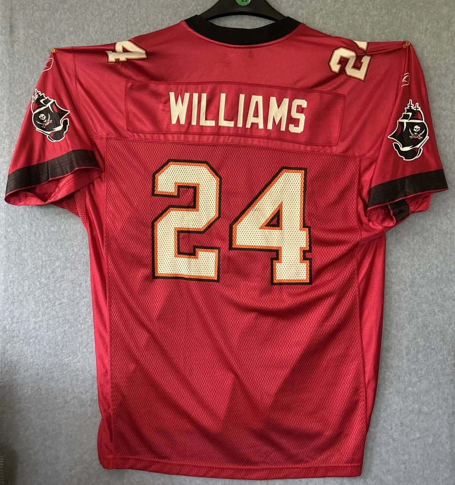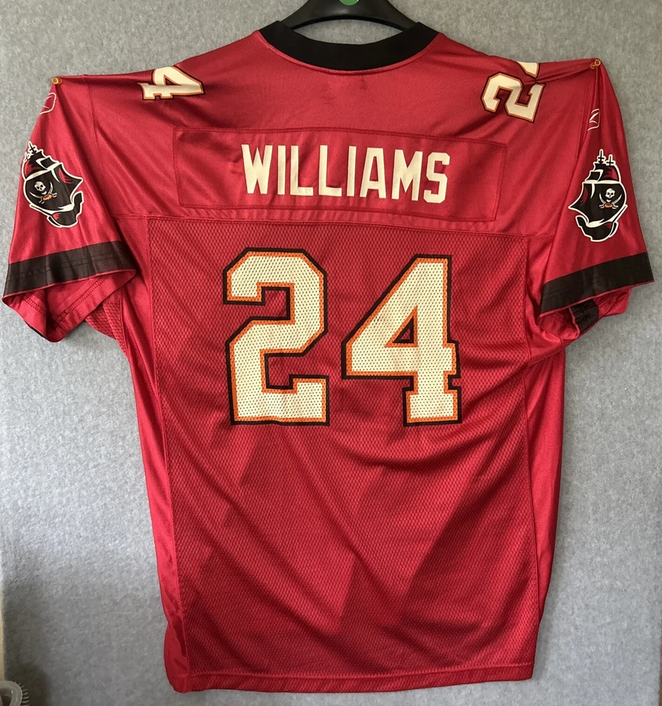 Show your support for the Tampa Bay Buccaneers with this officially licensed Cadillac Williams jersey. The red Reebok jersey features the number 24 and is perfect for any fan of the National Football League. Made for unisex adults, this size large jersey is ideal for those who want to show their love for the team during the regular season. The jersey is designed with the team's colors and features the player's name on the back. This product is perfect for anyone who wants to represent their favorite team. Get this Cadillac Williams Tampa Bay Buccaneers jersey today and show your support for the team during the game.