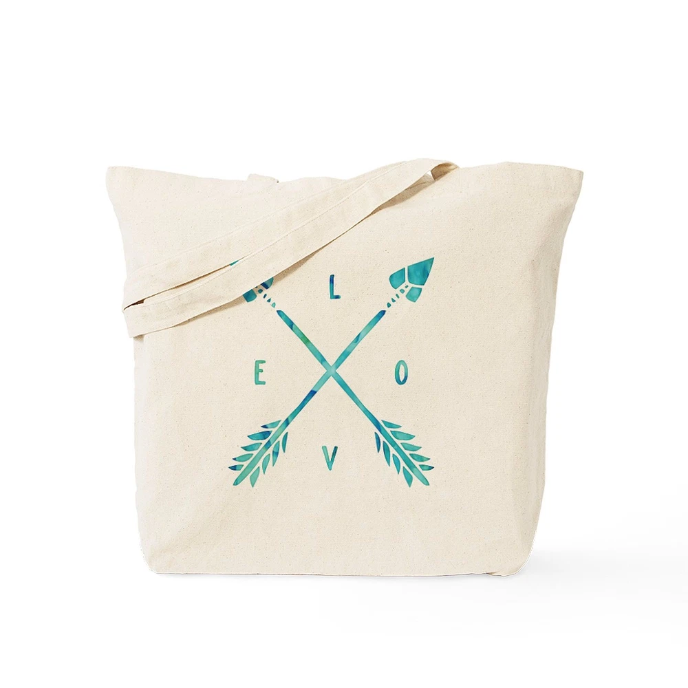CafePress Turquoise Watercolor Love Arrows Tote Bag (1664634643)