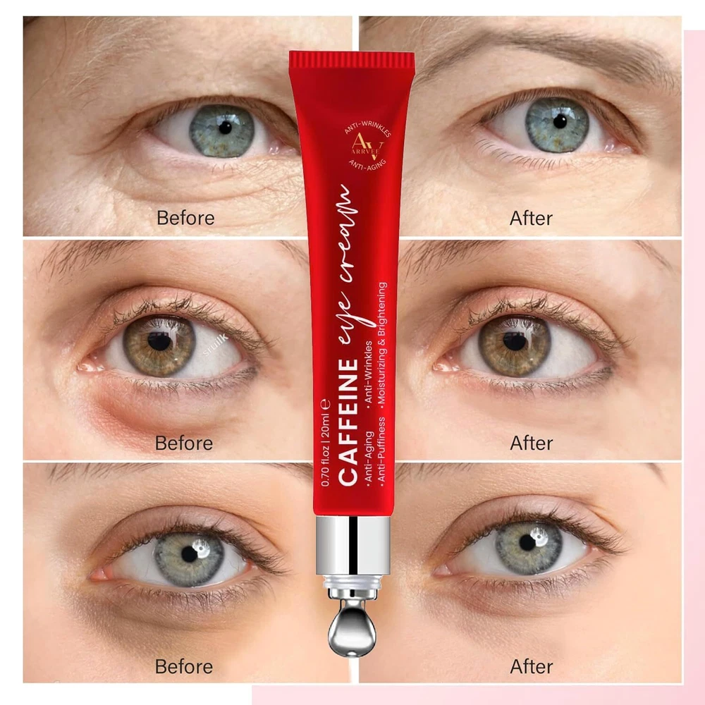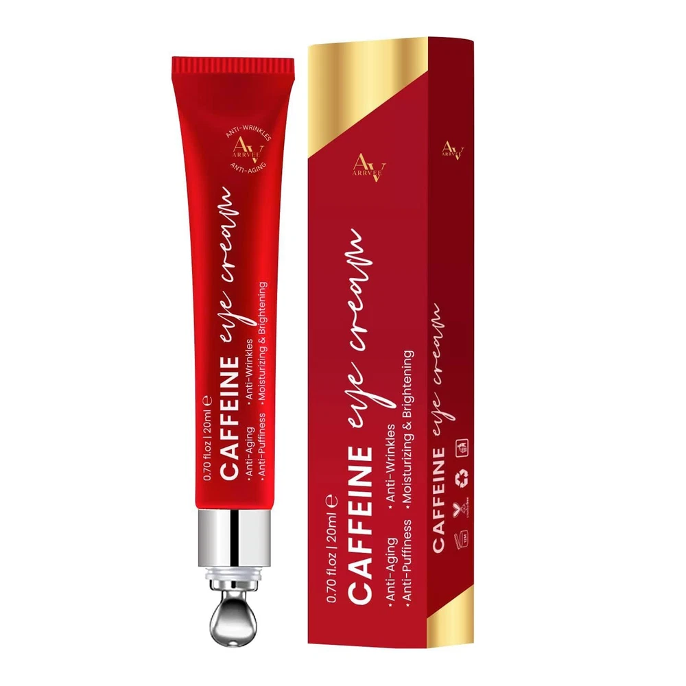 Caffeine Eye Cream for Anti Aging: Under eye cream for dark circles, Eye wrinkle, Anti Puffiness - Anti Aging Caffeine Eye cream For Under Eye Bags And Puffy Eyes 0.7 oz Product Details Brand: MEOLY Item Volume: 0.7 Fluid Ounces Item dimensions L x W x H: 5.3 x 1.1 x 0.8 inches Age Range (Description): Adult Special Feature: Water Resistant CAFFEINE EYE CREAM ANTI-AGING SOLUTION: MEOLY Caffeine eye cream specially formulated with strong anti-aging ingredients like Retinol, Caffeine, Sodium Hyaluronate, Vitamin E. It reduces dark circles, puffiness, wrinkles, fine lines, and sagging eyelids caused by lack of sleep. Use it twice a day, morning and night, for a more refreshed and youthful look. DARK CIRCLES, WRINKLES, FINE LINES TREATMENT: Hydrating and Nourishing, MEOLY eye cream is made with proven ingredients that prevent skin contraction, boost eye metabolism, and reduce inflammation. It moisturizes the skin around your eyes, smoothing out fine lines and wrinkles for long-lasting hydration. REPAIR, RESTORE & REPEAT: Our Retinol eye cream for anti aging has a silky, lightweight texture. It absorbs quickly and leaves your skin smooth without feeling greasy. You can easily layer it with other moisturizers and creams, repairing the skin under the eye making it perfect for dark circles under the eyes. RELAXING COOLING ROLLER: Our Anti Aging eye cream comes with a cooling roller for a soothing massage experience. Simply glide the roller over the eye area to help the cream absorb efficiently. Treat yourself or someone you love to this refreshing eye bag care for women. GENTLE SUITABLE FOR ALL SKIN: Our Caffeine eye cream for Anti Aging is suitable for all skin types, including sensitive skin. It is from safely selected materials, making it safe and gentle to use.