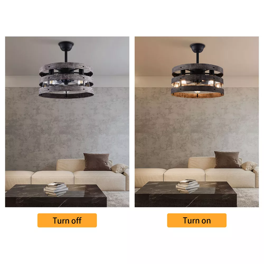 Specifications Color: Gray, Black Material: Metal, ABS Style: Modern Type: US Standard Shape: Round Surface Treatment: Baking Paint Electric Fan Design: Ceiling Fan Room Type: Bedroom, Living Room, Dining Room, Living Room, Kitchen Controller Type: Frequency Conversion Remote Control Motor Type: Pure Copper Assembly Required: Yes Mounting Type: Ceiling Mount Number of Fan Blades: 5 Number of Items: 1 Rated Voltage: 85-265V Max. Bulb Power(Each): 40W Power Source: DC Battery Type: 2*AA batteries(Included) Wind Speed Gears: 6 Timing: 1/2/4h Bulb Size: 5*E26 (Not Included) Suitable Area: 15-20㎡/161-215ft² Noise: About 35dB Base Diameter: 15cm/5.9inch Lampshade Size(L*H): 48*18cm/18*7.09inch Rod Height: 25cm/9.8inch, 12cm/4.8inch Caged Ceiling Fan with Light,Farmhouse Ceiling Fan with Remote Control,Rustic Description This 2-in-1 ceiling fan light allows you to feel the bright light and enjoy the coolness at the same time. It has six gears of wind speeds with a timing function to meet your daily usage needs, and y ou can also reverse the direction of the fan in winter. It can be integrated with different decoration styles and is ideal to create an excellent life and sleep environment to accompany you in all seasons. Specifications Color: Gray, Black Material: Metal, ABS Style: Modern Type: US Standard Shape: Round Surface Treatment: Baking Paint Electric Fan Design: Ceiling Fan Room Type: Bedroom, Living Room, Dining Room, Living Room, Kitchen Controller Type: Frequency Conversion Remote Control Motor Type: Pure Copper Assembly Required: Yes Mounting Type: Ceiling Mount Number of Fan Blades: 5 Number of Items: 1 Rated Voltage: 85-265V Max. Bulb Power(Each): 40W Power Source: DC Battery Type: 2*AA batteries(Included) Wind Speed Gears: 6 Timing: 1/2/4h Bulb Size: 5*E26 (Not Included) Suitable Area: 15-20㎡/161-215ft² Noise: About 35dB Base Diameter: 15cm/5.9inch Lampshade Size(L*H): 48*18cm/18*7.09inch Rod Height: 25cm/9.8inch, 12cm/4.8inch Key Features Stylish Appearance: Fashionable colors(black and gray)and delicate lines make it very stylish and can be a good decoration to blend in with different decor styles and add color to your room. Embrace Smart Life : Applied with remote control, you can easily adjust the wind speeds and timer while lying in bed and don't need to get up and press the switch, bringing more convenience to your life. Healthy and Energy-saving: The ceiling fan light provides more comprehensive air circulation and cooling, thereby reducing the frequency and time of air conditioning use, saving energy, and reducing expenses. It can avoid direct blowing and reduce the risk of air conditioning diseases. Build to last : The lampshade is made of high-quality metal and adopts a paint baking process , which is heat-resistant, strong, durable, and not easy to deform. The fan blades are made of ABS, which has high strength, good toughness, and good formability, which can ensure a smooth surface and good gloss. Multiple Functions: Integrating lighting and fans, illuminating the space while balancing room temperature, has become a new choice for home fashion! You can also reverse the direction of the fan in winter, blowing hot air from the top into the room and increasing the indoor temperature. High Safety: Five ABS blades are hidden in a semi-enclosed lampshade, which can allow for unobstructed lighting and air supply to avoid accidents caused by getting caught in the blades, making it much safer than traditional fans. Adjustable Speed&Working Time: It has 6 gears of wind speed and you can choose low speed to enjoy the comfortable breeze or high speed to cool down quickly. Meanwhile, You can control its working hours in advance (1/2/4 hour), so you don't have to worry about catching a cold or wasting electricity. Wide Application: T he equipped two rods(4.8", 9.8") make it suitable for a variety of ceiling heights while ensuring better lighting and air circulation effect. And it supports a wide voltage, which can adapt to different voltage environments. Easy to Clean : The smooth and flat shell, as well as the detachable fan blades, make this product easy to clean. You only need to clean it with a dry cloth, saving you lots of time and effort. Guaranteed Customer Service: We aim to provide quality products and services. If you have problems, please feel free to contact us. We will reply and solve the problem for you as soon as possible. Details Upgraded Blades: The fan blades adopt an aerodynamic design, providing a stable and powerful air supply with low noise. Solid Base: The thickened and enlarged base( 5.9inch )will bring stronger load-bearing capacity and stability. Pure Copper Motor: It has stable performance, low-temperature rise, and low noise(About 35dB), providing a quiet working and sleeping environment. Meanwhile, there are a lot of heat dissipation holes on the motor shell, which can provide a good heat dissipation effect to ensure the stable operation and long service life of the motor. E26 Lamp Holders: This product uses the standard E26 lamp base to facilitate the installation of various bulbs. Application It is suitable for the living room, dining room, kitchen, study bedroom, small bedroom, conference room, and other places of 15-20㎡/161-215ft². Package Included 1* Ceiling Fan Light 1* English Manual 1* Remote Control 2* AA Batteries All Accessories for Assembly Notes Please cut off the power supply when cleaning. This product does not include a light bulb. Please prepare four E26 bulbs in advance. Please read the manual completely before installation and use, and pay particular attention to the safety instructions included. Please allow the slight color difference caused by the shooting light and 1-3cm error due to manual measurement, and make sure you do not mind before you order. Payment Delivery details Terms of sales About us Contact us Payment We accept ebay payment 。 Fees such as import duties, taxes are not included in the item price or shipping