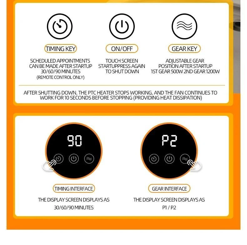 Free and fast shipping , shipping take up 1-7 Business Days 30 Day Return Accepted EASY PAYMENT via PayPal, Credit Card, PayPal Credit, Google Pay... 1200w Heater Portable Electric Plastic White Free Stand Touch Home Plug-in Main features 1. Simple and elegant touch control screen, highly technological. 2. Remote control more convenient, easytemperature adjustment without moving. 3. Three speed intelligent timing, 30minutes, 60minutes, 90minutes, long lasting warm heating at will. 4. This space heater is with two temperature selection, suitable for warmth and good mood. 5. Wide angle air supply, uniform hot air circulation throughout the entire room. 6. Overheating temperature protection, safe use & worry free. 7. Wide angle air supply, uniform hot air circulation throughout the entire room. 8. Dumping automatic power off, safe and reliable use. 9. PTC ceramic 1200W fast heating, quick heating in 3 seconds. 10. Low noise operation, good sleep every night. 11. A portable heater, applicable for various scenarios. 12. Product size is about 118*118*325mm, package weight is about 1100g. Package Details Electric heater*1pc, remote control*1pc, user manual*1pc REVIEWS The product came very well packaged. I'm very happy. thank you for everything. Seller strongly recommended. This is great! I definitely recommend! Product looks amazing Delivery was fast. Excellent seller, great communication. I advise everyone to buy it!